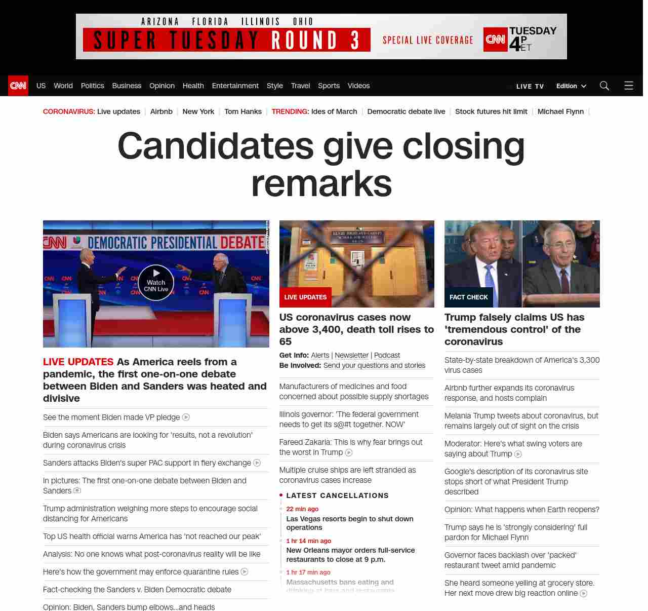 || banner-text–natural”> Candidates give closing remarks ||” , title: “CNN – Breaking News, Latest News and Videos” , siblings: {“articleList”:[{“uri”:”/politics/live-news/2020-democratic-debate-live-updates/index.html”,”headline”:”u003cstrong>As America reels from a pandemic, the first one-on-one debate between Biden and Sanders was heated and divisive u003c/strong>”,”thumbnail”:”//cdn.cnn.com/cnnnext/dam/assets/200315210949-33-cnn-debate-0315-small-11.jpg”,”duration”:””,”description”:””,”layout”:””