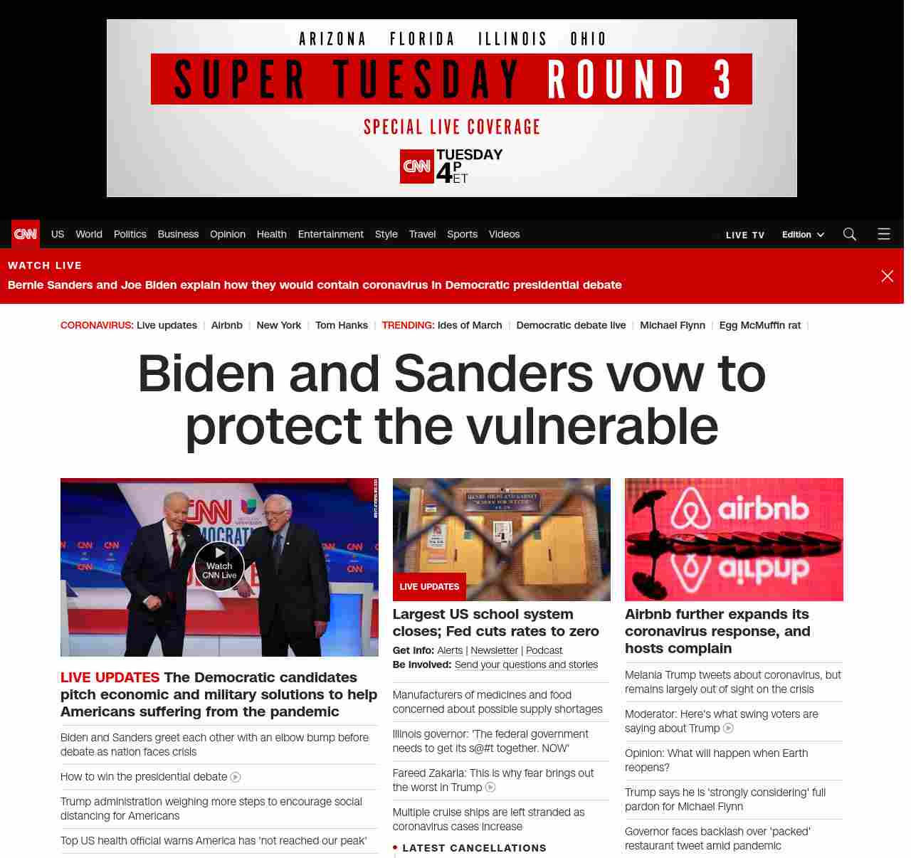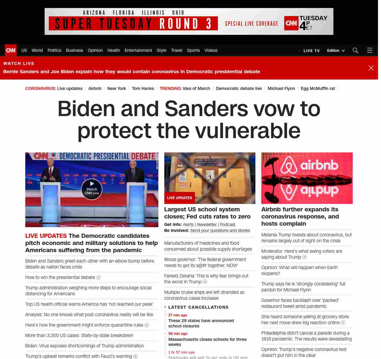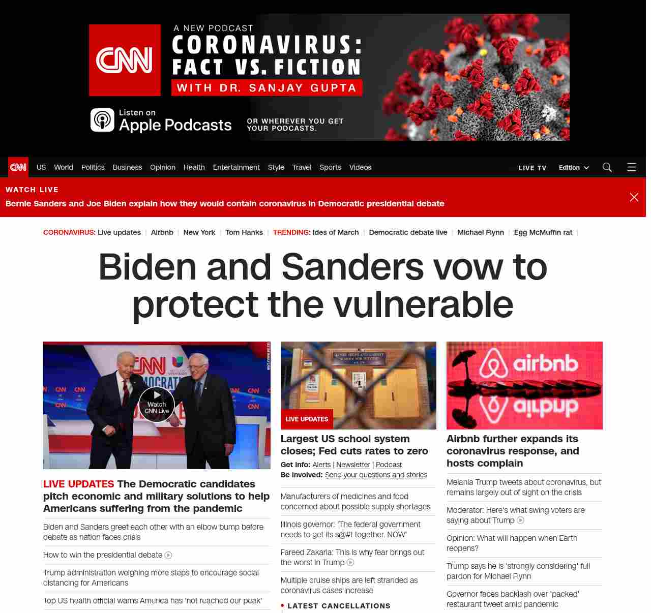 || banner-text–natural”> Biden and Sanders vow to protect the vulnerable ||” , title: “CNN – Breaking News, Latest News and Videos” , siblings: {“articleList”:[{“uri”:”/politics/live-news/2020-democratic-debate-live-updates/index.html”,”headline”:”u003cstrong>The Democratic candidates pitch economic and military solutions to help Americans suffering from the pandemic u003c/strong>”,”thumbnail”:”//cdn.cnn.com/cnnnext/dam/assets/200315201827-16-cnn-debate-0315-small-11.jpg”,”duration”:””,”description”:””,”layout”:””