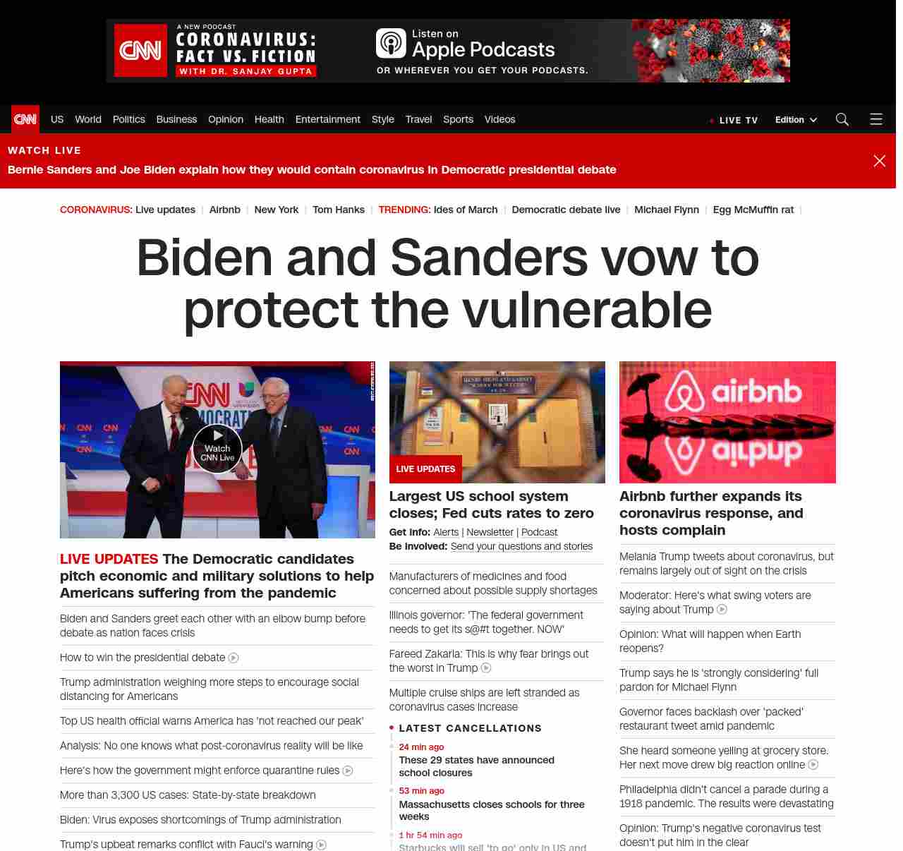 || banner-text–natural”> Biden and Sanders vow to protect the vulnerable ||” , title: “CNN – Breaking News, Latest News and Videos” , siblings: {“articleList”:[{“uri”:”/politics/live-news/2020-democratic-debate-live-updates/index.html”,”headline”:”u003cstrong>The Democratic candidates pitch economic and military solutions to help Americans suffering from the pandemic u003c/strong>”,”thumbnail”:”//cdn.cnn.com/cnnnext/dam/assets/200315200039-10-cnn-debate-0315-small-11.jpg”,”duration”:””,”description”:””,”layout”:””