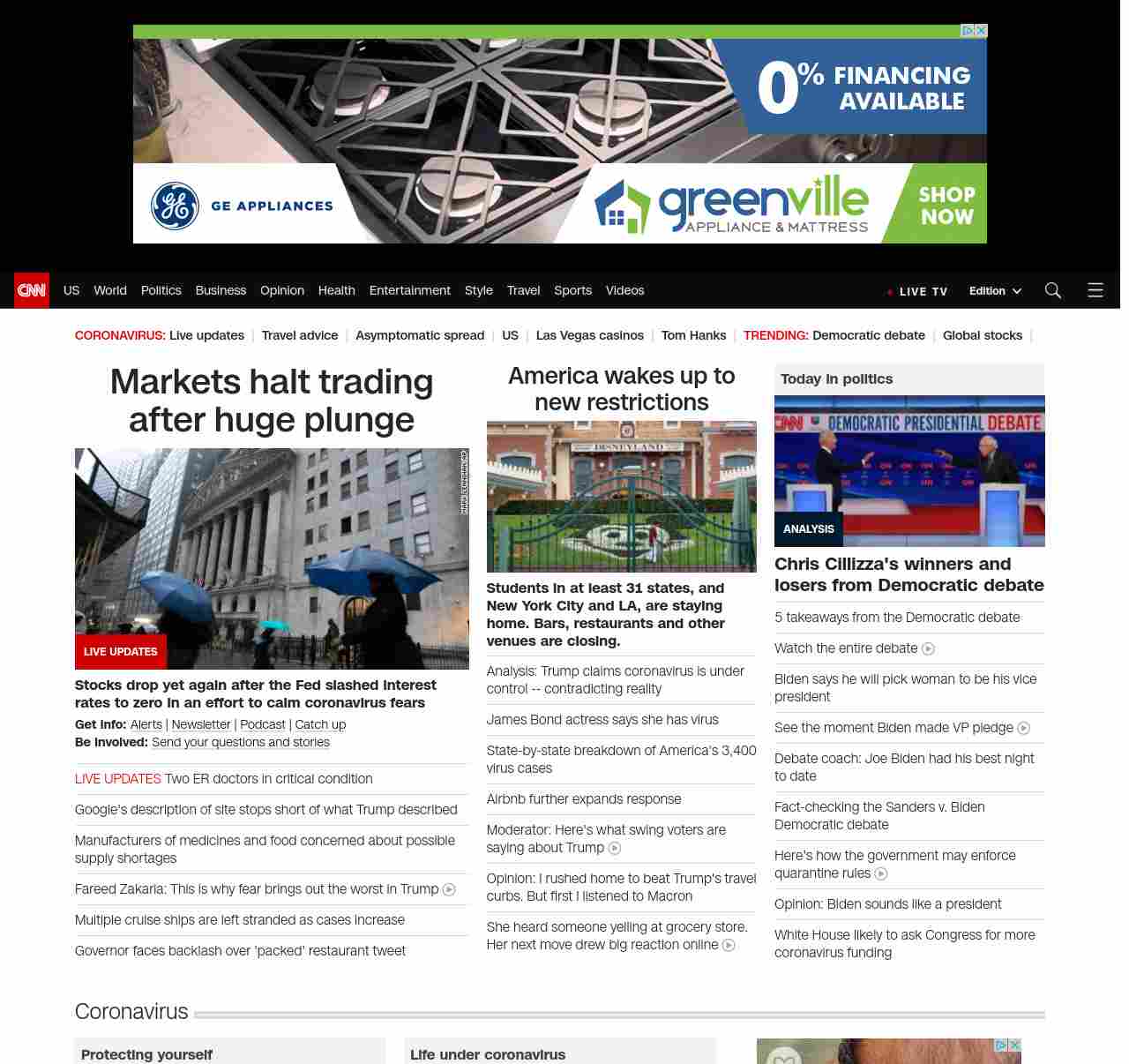 CNN3: “:”u003cstrong>Stocks drop yet again after the Federal Reserve slashed interest rates to zero in an effort to calm coronavirus fearsu003c/strong>”, “BANNER=|pagerendered| ((lubuntu at wor2))