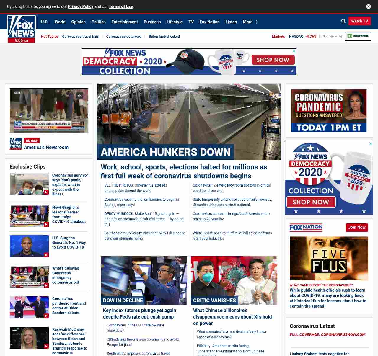 FN: [[AMERICA HUNKERS DOWN]] Work, school, sports, elections halted for millions as first full week of coronavirus shutdowns begins ((lubuntu at wor2))