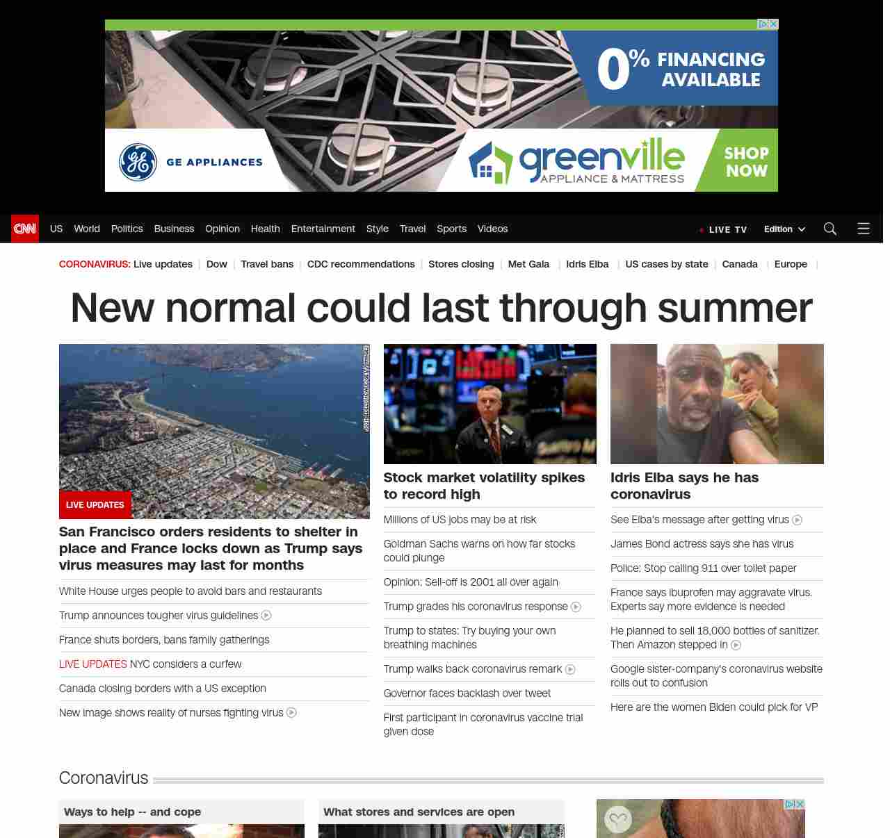 || banner-text–natural”> Stocks crash as Trump says new normal could last months ||” , title: “CNN – Breaking News, Latest News and Videos” , siblings: {“articleList”:[{“uri”:”/videos/politics/2020/03/16/trump-announces-guidelines-slow-coronavirus-spread-presser-sot-vpx.cnn”,”headline”:”Trump announces tougher virus guidelines”,”thumbnail”:”//cdn.cnn.com/cnnnext/dam/assets/200316151758-01-trump-coronavirus-briefing-0316-small-11.jpg”,”duration”:”01:30″,”description”:”President Donald Trump unveils tougher guidelines to slow the spread of the coronavirus in the US, including urging people to avoid gatherings of more than 10 people. “,”layout”:””,”iconType”:”video”