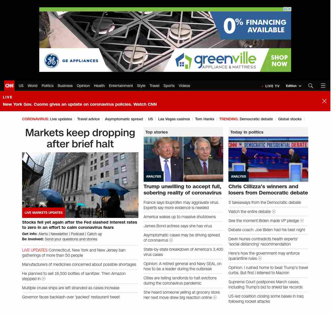 CNN3: “:”u003cstrong>Stocks fell yet again after the Fed slashed interest rates to zero in an effort to calm coronavirus fearsu003c/strong>”, “BANNER=|pagerendered| ((lubuntu at wor2))