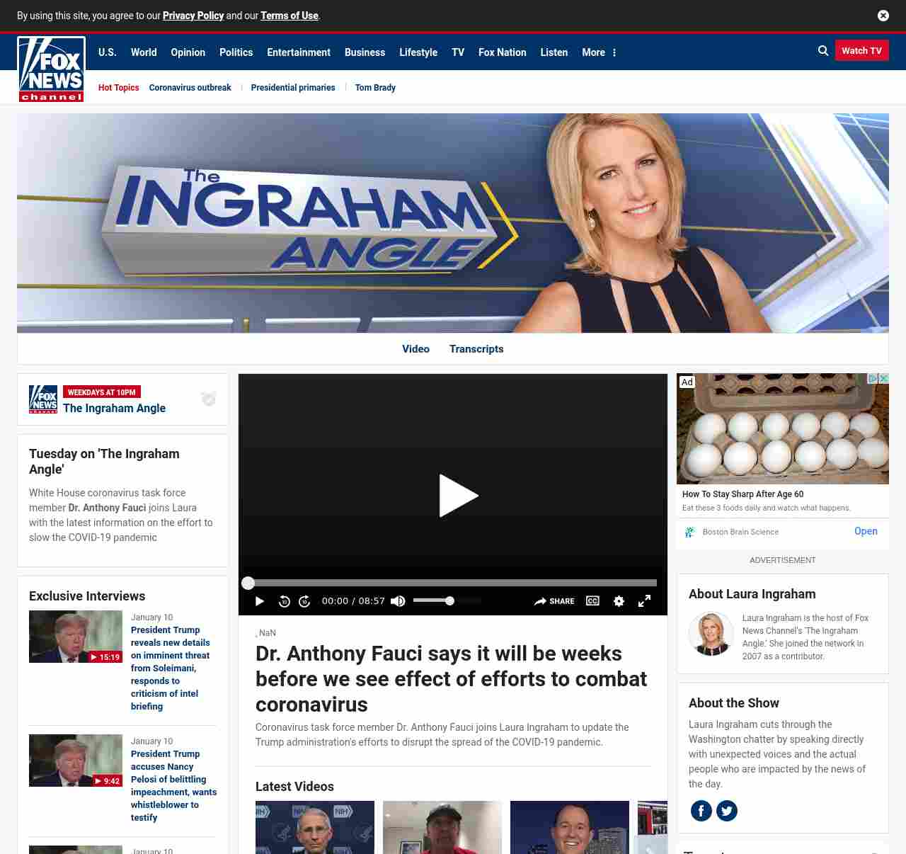 Coronavirus task force member Dr. Anthony Fauci joins Laura Ingraham to update the Trump administration’s efforts to disrupt the spread of the COVID-19 pandemic