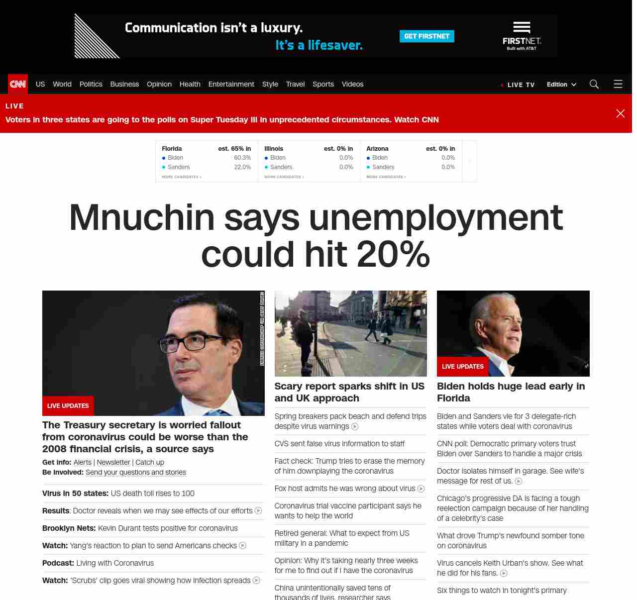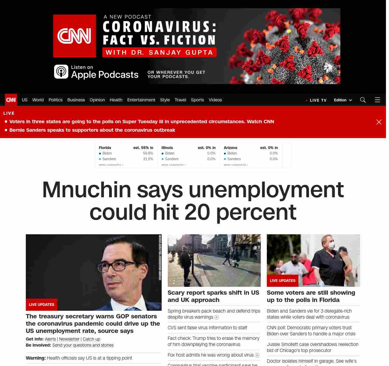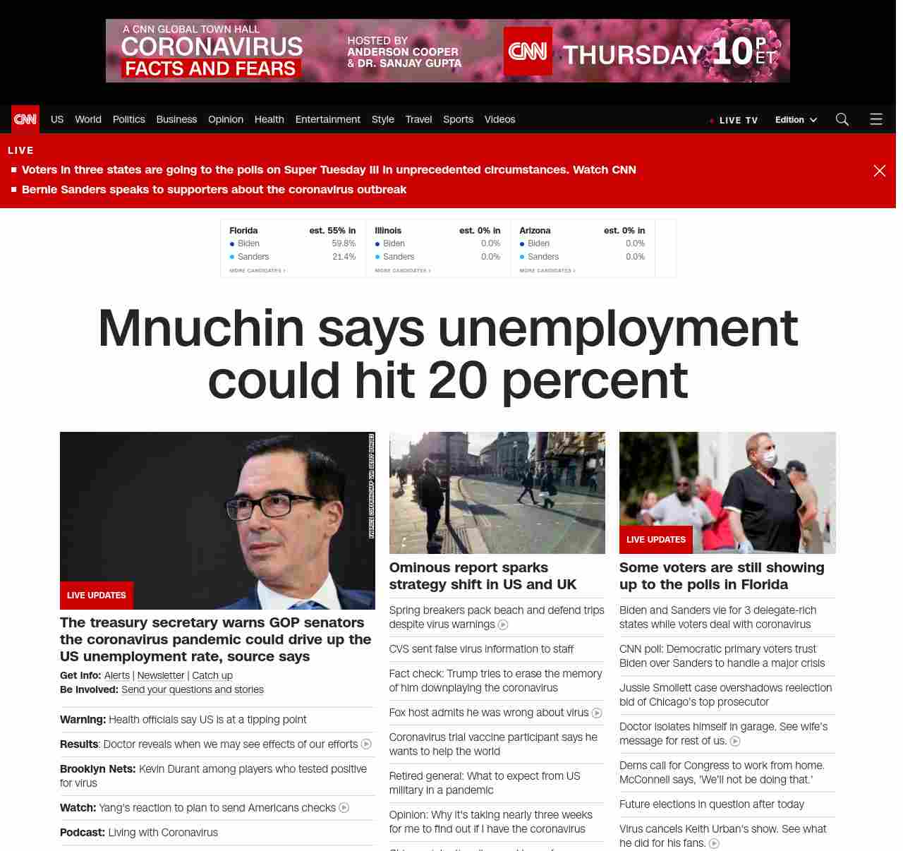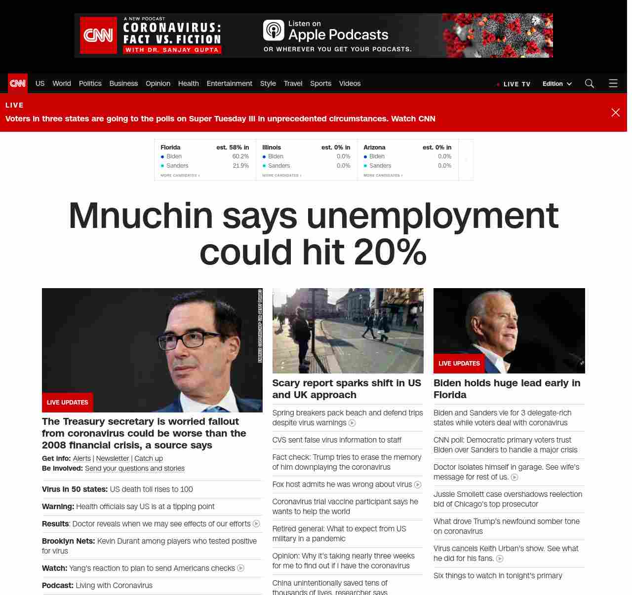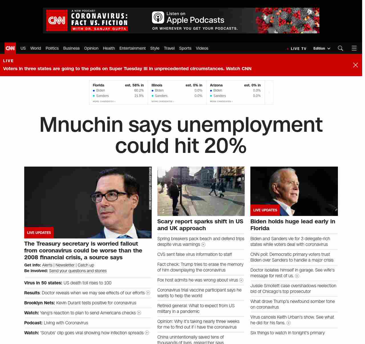 CNN3: “:”u003cstrong>The Treasury secretary warns GOP senators the coronavirus pandemic could drive up the US unemployment rate, source saysu003c/strong>”, “BANNER=|pagerendered| ((lubuntu at wor2))