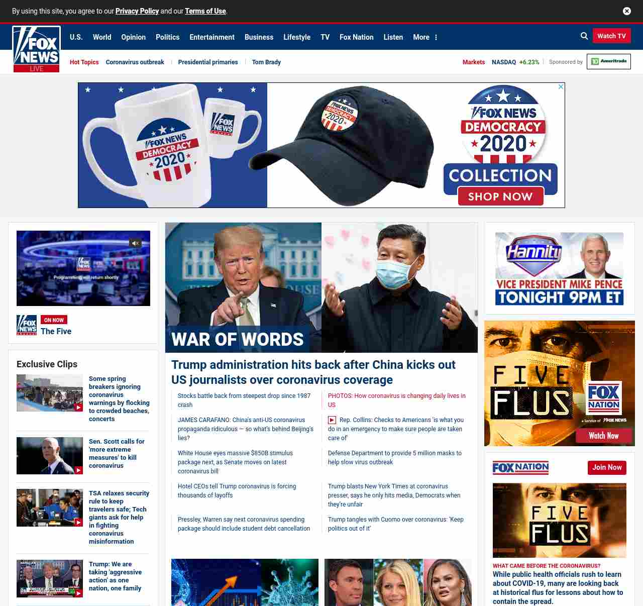 FN: [[WAR OF WORDS]] Trump administration hits back after China kicks out US journalists over coronavirus coverage ((lubuntu at wor2))