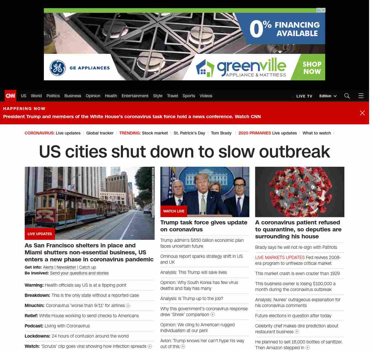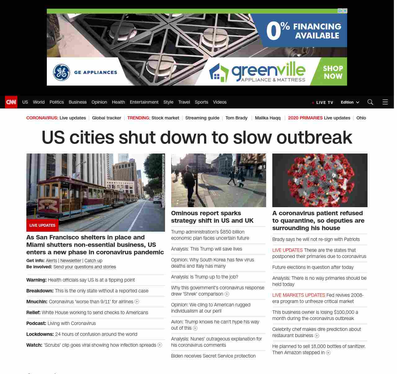 || banner-text–maximized banner-text-size–char-38″> US cities shut down to slow outbreak ||” , title: “CNN – Breaking News, Latest News and Videos” , siblings: {“articleList”:[{“uri”:”/world/live-news/coronavirus-outbreak-03-17-20-intl-hnk/index.html”,”headline”:”u003cstrong>Nationwide coronavirus cases surpass 5,000. Florida bans groups of 10 or more from beaches. San Francisco shelters in place.u003c/strong>”,”thumbnail”:”//cdn.cnn.com/cnnnext/dam/assets/200317121126-02-miami-beach-0317-small-11.jpg”,”duration”:””,”description”:”u003cstrong>Get info: u003c/strong>u003ca href=”https://www.cnn.com/specials/mobile-apps” target=”_blank”>Alertsu003c/a> | u003ca href=”https://www.cnn.com/specials/coronavirus-newsletter?utm_source=hp&source=hp” target=”_blank”>Newsletteru003c/a> | u003ca href=”https://www.cnn.com/2020/03/17/world/newsletter-coronavirus-03-17-20-intl/index.html” target=”_blank”>Catch upu003c/a>u003cbr />u003cstrong>Be involved: u003c/strong>u003ca href=”https://www.cnn.com/2020/03/11/us/coronavirus-testing-stories-invs/index.html” target=”_blank”>Send your questions and storiesu003c/a>”,”layout”:””