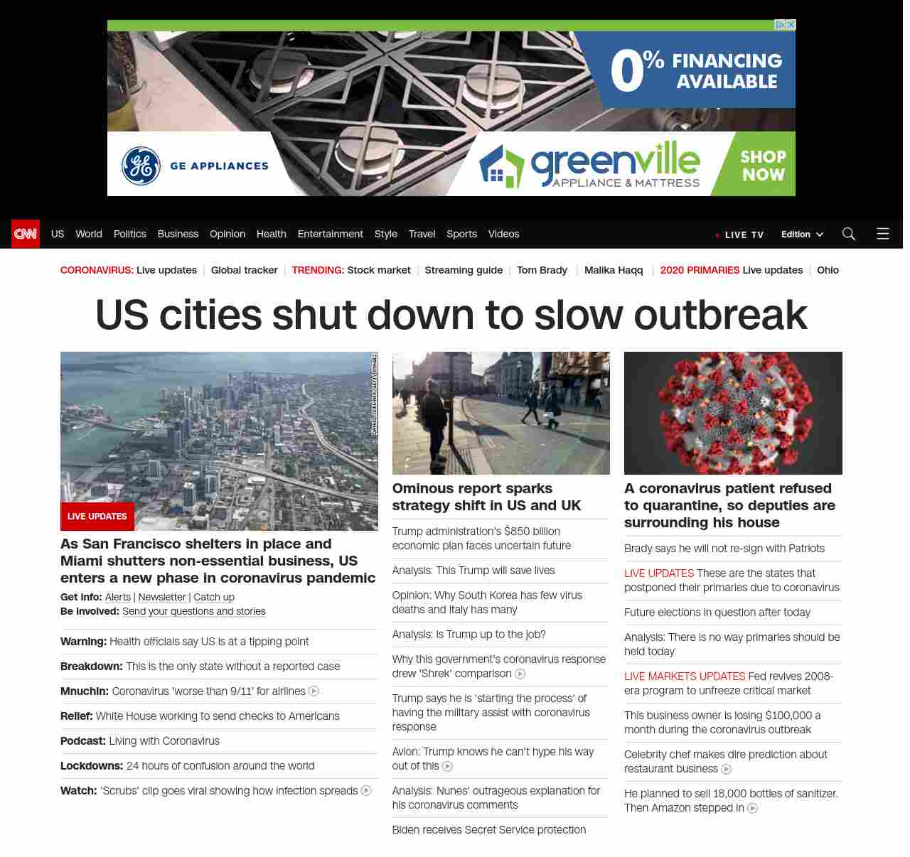 || banner-text–maximized banner-text-size–char-38″> US cities shut down to slow outbreak ||” , title: “CNN – Breaking News, Latest News and Videos” , siblings: {“articleList”:[{“uri”:”/world/live-news/coronavirus-outbreak-03-17-20-intl-hnk/index.html”,”headline”:”u003cstrong>As San Francisco shelters in place and Miami shutters non-essential business, US enters a new phase in coronavirus pandemicu003c/strong>”,”thumbnail”:”//cdn.cnn.com/cnnnext/dam/assets/200317153144-01-san-francisco-lockdown-0316-restricted-small-11.jpg”,”duration”:””,”description”:”u003cstrong>Get info: u003c/strong>u003ca href=”https://www.cnn.com/specials/mobile-apps” target=”_blank”>Alertsu003c/a> | u003ca href=”https://www.cnn.com/specials/coronavirus-newsletter?utm_source=hp&source=hp” target=”_blank”>Newsletteru003c/a> | u003ca href=”https://www.cnn.com/2020/03/17/world/newsletter-coronavirus-03-17-20-intl/index.html” target=”_blank”>Catch upu003c/a>u003cbr />u003cstrong>Be involved: u003c/strong>u003ca href=”https://www.cnn.com/2020/03/11/us/coronavirus-testing-stories-invs/index.html” target=”_blank”>Send your questions and storiesu003c/a>”,”layout”:””