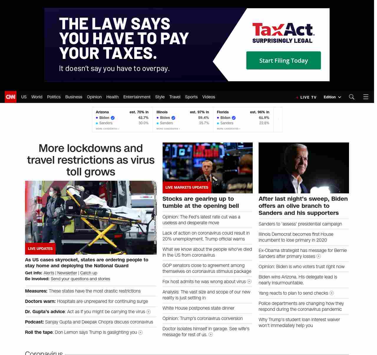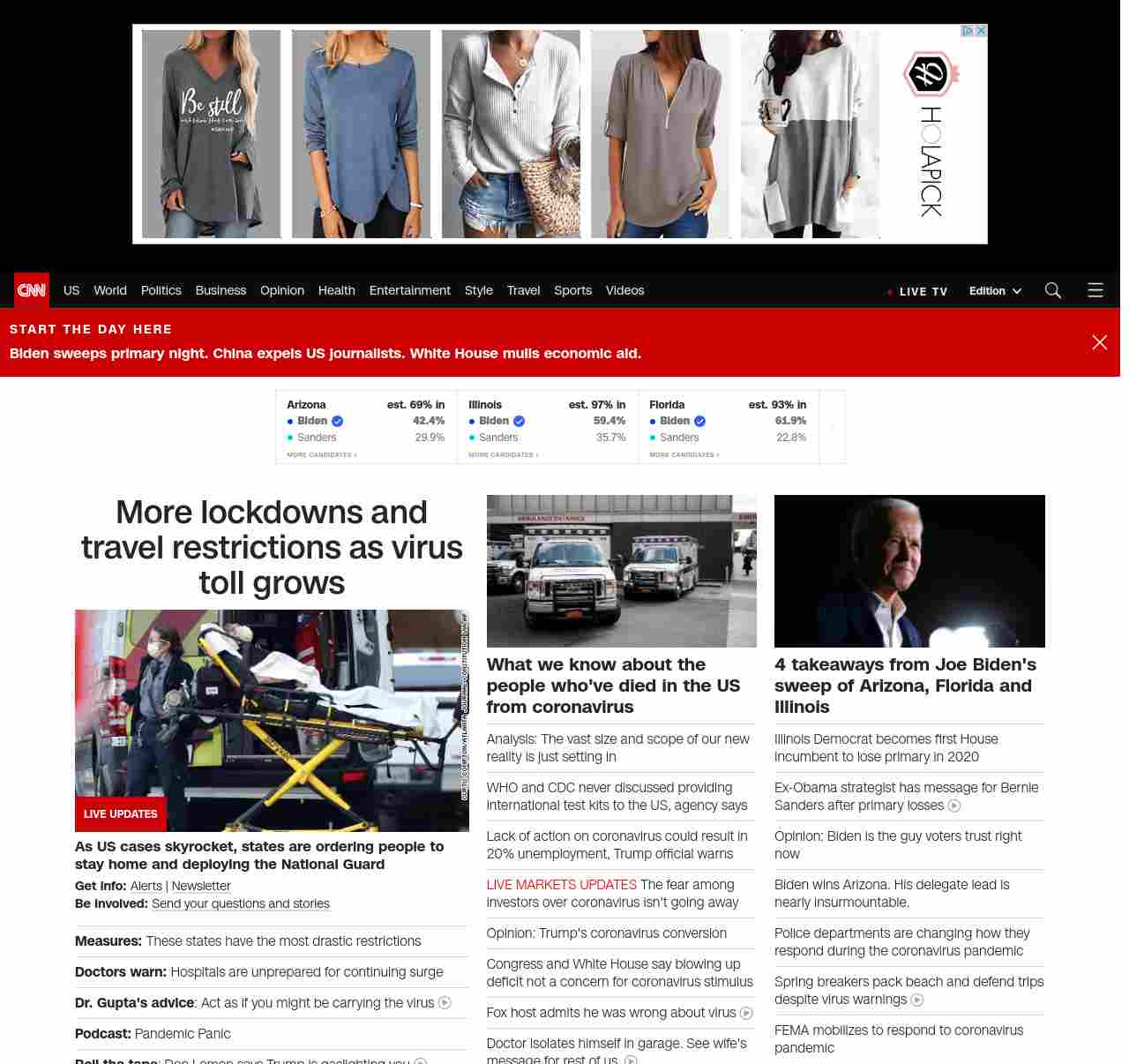 || screaming-banner-text banner-text-size–char-47″ data-analytics=”_list-hierarchical-xs_article_”> More lockdowns and travel restrictions as virus toll grows ||” , title: “CNN – Breaking News, Latest News and Videos” , siblings: {“articleList”:[{“uri”:”/world/live-news/coronavirus-outbreak-03-18-20-intl-hnk/index.html”,”headline”:”u003cstrong>As US cases skyrocket, states are ordering people to stay home and deploying the National Guardu003c/strong>”,”thumbnail”:”//cdn.cnn.com/cnnnext/dam/assets/200318030835-01-coronavirus-georgia-0316-small-11.jpg”,”duration”:””,”description”:”u003cstrong>Get info: u003c/strong>u003ca href=”https://www.cnn.com/specials/mobile-apps” target=”_blank”>Alertsu003c/a> | u003ca href=”https://www.cnn.com/specials/coronavirus-newsletter?utm_source=hp&source=hp” target=”_blank”>Newsletteru003c/a> u003cbr />u003cstrong>Be involved: u003c/strong>u003ca href=”https://www.cnn.com/2020/03/11/us/coronavirus-testing-stories-invs/index.html” target=”_blank”>Send your questions and storiesu003c/a>”,”layout”:””