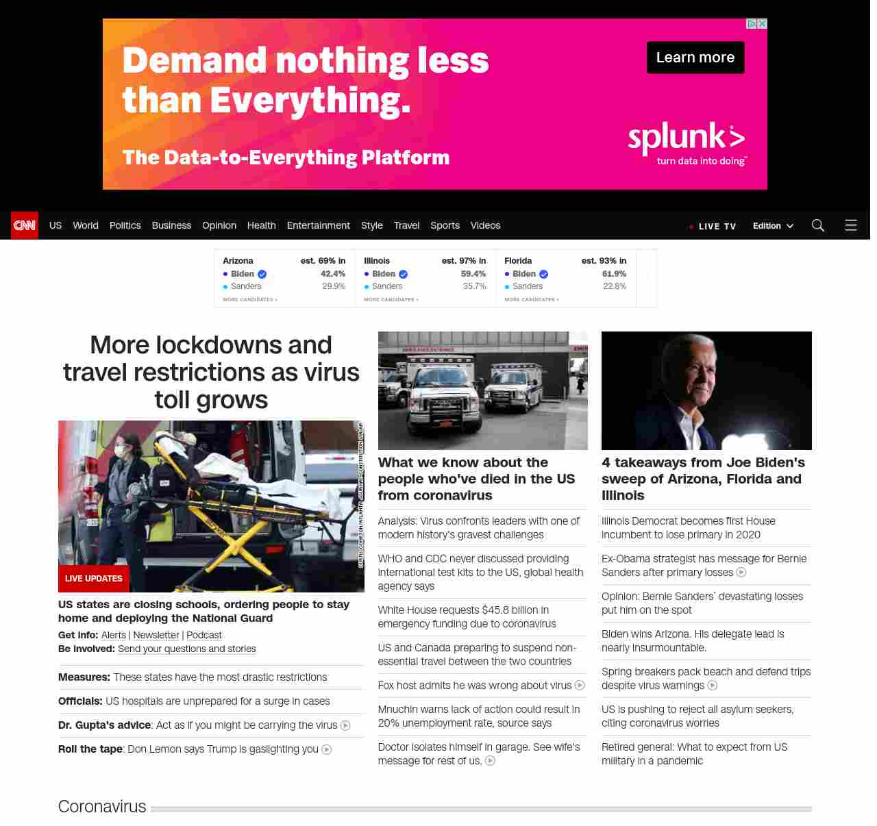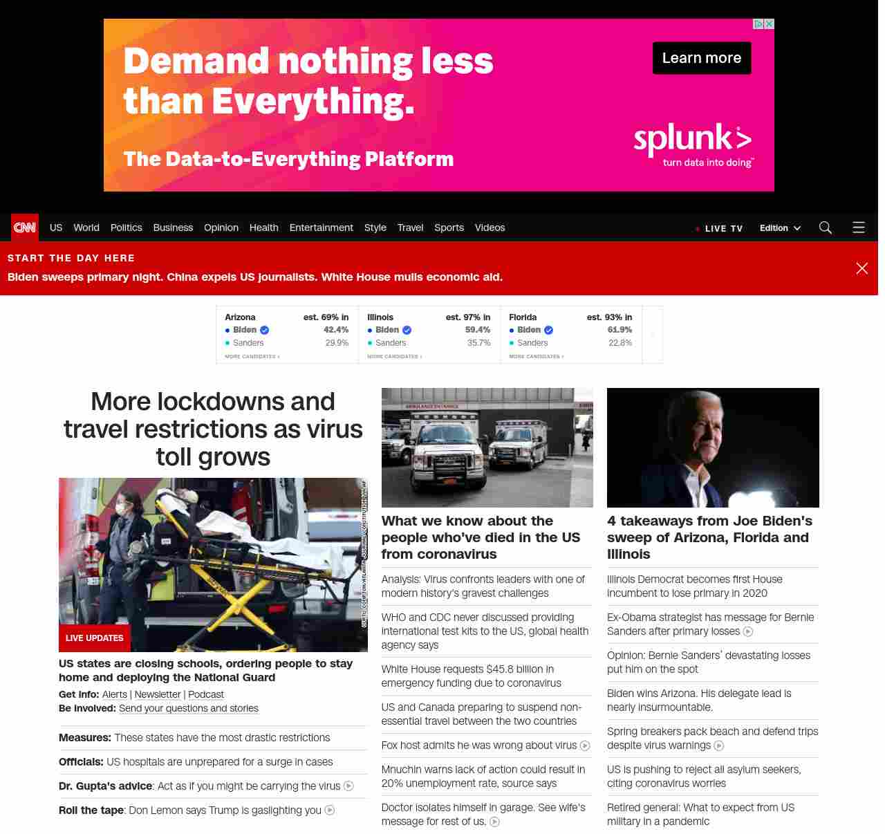 || screaming-banner-text banner-text-size–char-47″ data-analytics=”_list-hierarchical-xs_article_”> More lockdowns and travel restrictions as virus toll grows ||” , title: “CNN – Breaking News, Latest News and Videos” , siblings: {“articleList”:[{“uri”:”/world/live-news/coronavirus-outbreak-03-18-20-intl-hnk/index.html”,”headline”:”u003cstrong>US states are closing schools, ordering people to stay home and deploying the National Guardu003c/strong>”,”thumbnail”:”//cdn.cnn.com/cnnnext/dam/assets/200318030835-01-coronavirus-georgia-0316-small-11.jpg”,”duration”:””,”description”:”u003cstrong>Get info: u003c/strong>u003ca href=”https://www.cnn.com/specials/mobile-apps” target=”_blank”>Alertsu003c/a> | u003ca href=”https://www.cnn.com/specials/coronavirus-newsletter?utm_source=hp&source=hp” target=”_blank”>Newsletteru003c/a> | u003ca href=”https://www.cnn.com/audio/podcasts/corona-virus”>Podcastu003c/a> u003cbr />u003cstrong>Be involved: u003c/strong>u003ca href=”https://www.cnn.com/2020/03/11/us/coronavirus-testing-stories-invs/index.html” target=”_blank”>Send your questions and storiesu003c/a>”,”layout”:””