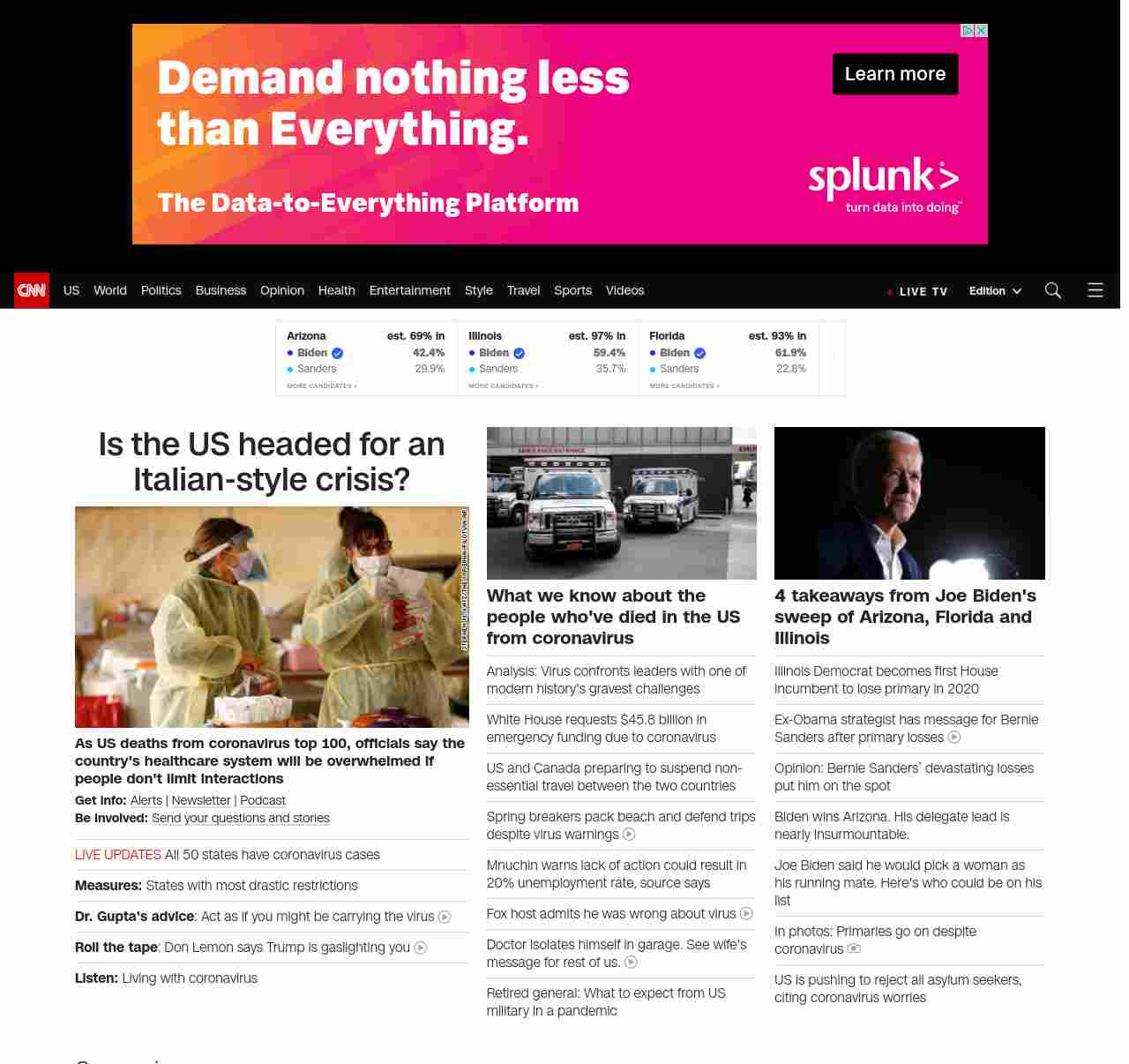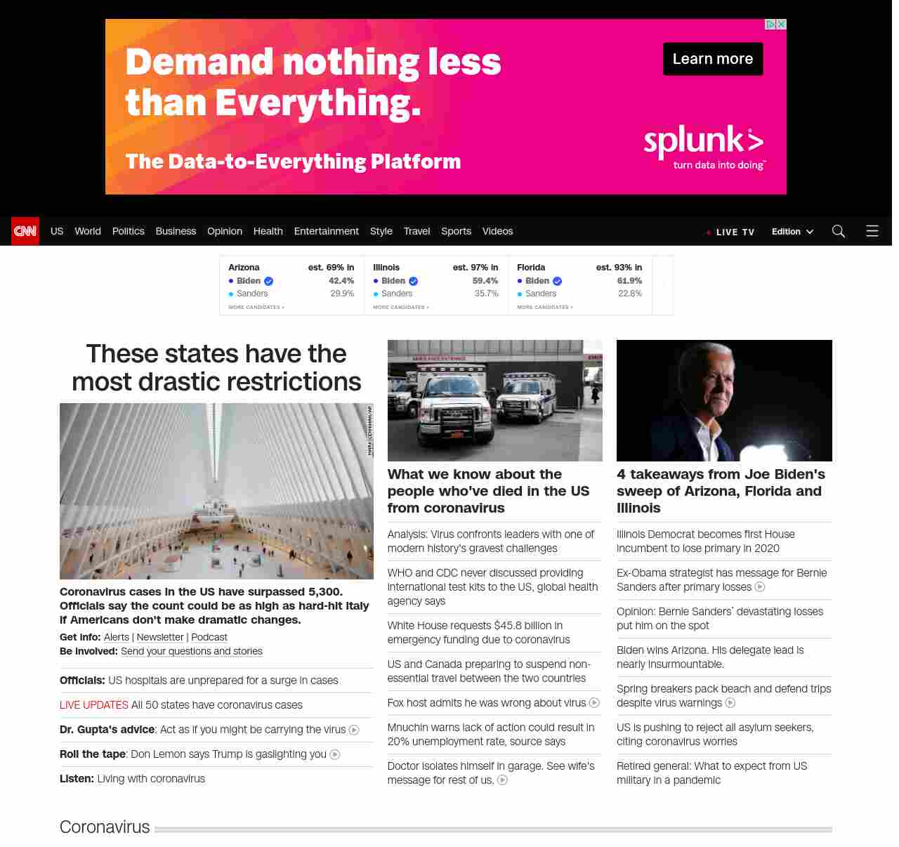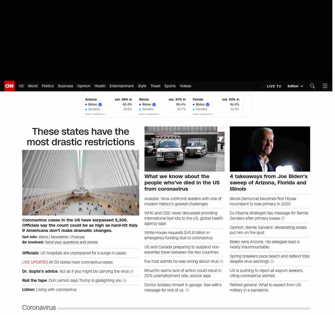 CNN3: “:”u003cstrong>Coronavirus cases in the US have surpassed 5, 300. Officials say the count could be as high as hard-hit Italy if Americans don’t make dramatic changes.u003c/strong>”, “BANNER=|pagerendered| ((lubuntu at wor2))