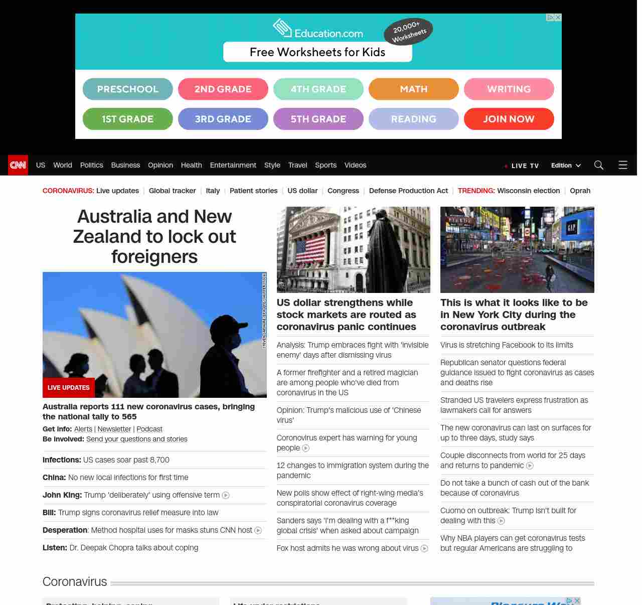 || screaming-banner-text banner-text-size–char-47″ data-analytics=”_list-hierarchical-xs_article_”> Australia and New Zealand to lock out foreigners ||” , title: “CNN – Breaking News, Latest News and Videos” , siblings: {“articleList”:[{“uri”:”/world/live-news/coronavirus-outbreak-03-19-20-intl-hnk/index.html”,”headline”:”u003cstrong>Australia reports 111 new coronavirus cases, bringing the national tally to 565u003c/strong>”,”thumbnail”:”//cdn.cnn.com/cnnnext/dam/assets/200319023055-01-coronavirus-outbreak-0313-australia-small-11.jpg”,”duration”:””,”description”:”u003cstrong>Get info: u003c/strong>u003ca href=”https://www.cnn.com/specials/mobile-apps” target=”_blank”>Alertsu003c/a> | u003ca href=”https://www.cnn.com/specials/coronavirus-newsletter?utm_source=hp&source=hp” target=”_blank”>Newsletteru003c/a> | u003ca href=”https://www.cnn.com/audio/podcasts/corona-virus”>Podcastu003c/a> u003cbr />u003cstrong>Be involved: u003c/strong>u003ca href=”https://www.cnn.com/2020/03/11/us/coronavirus-testing-stories-invs/index.html” target=”_blank”>Send your questions and storiesu003c/a>”,”layout”:””