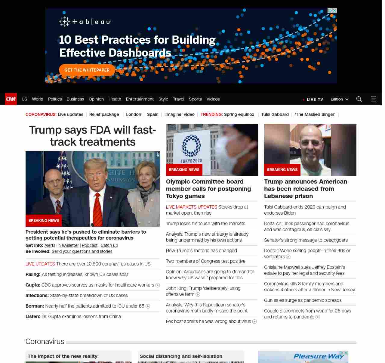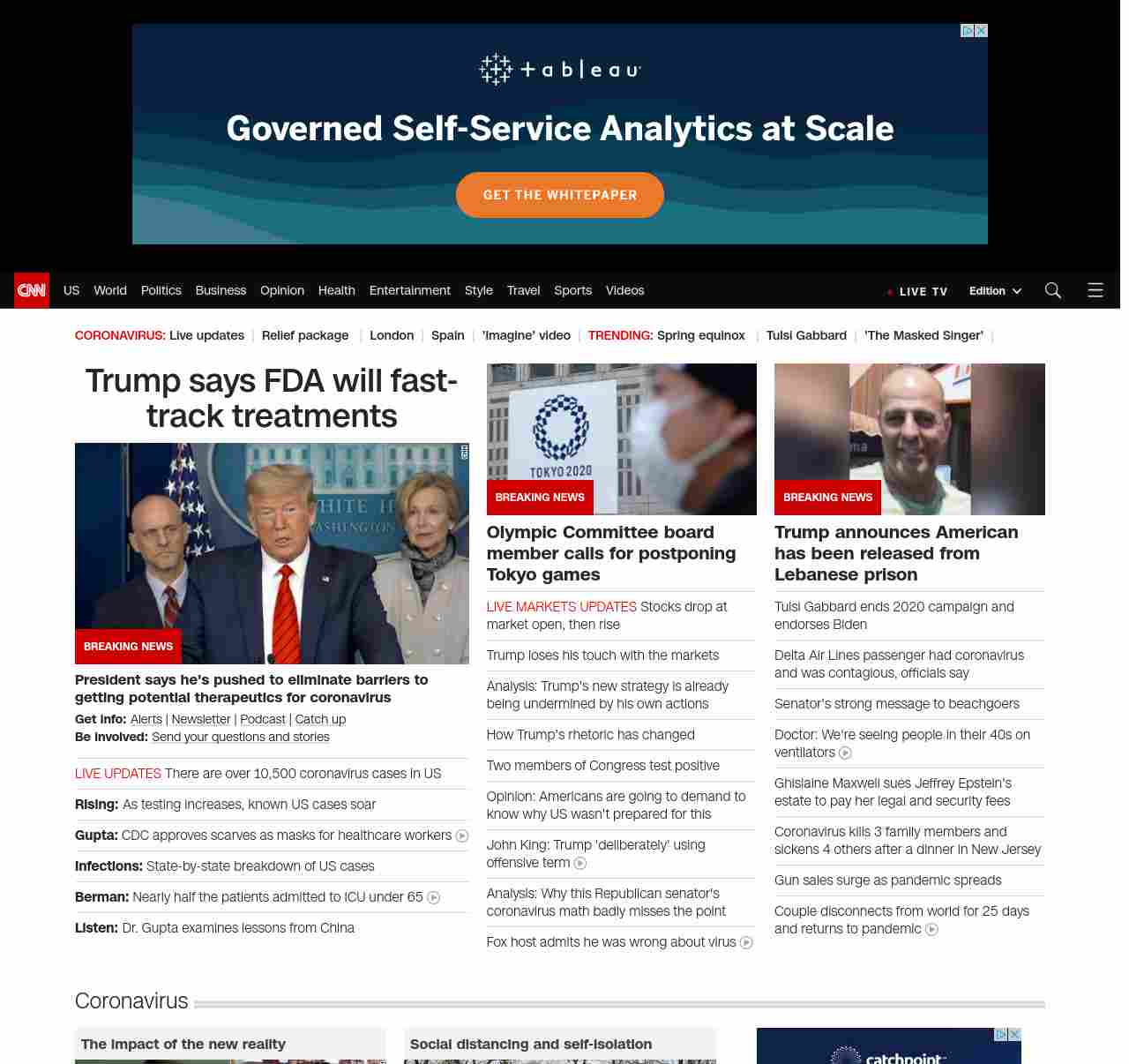 OU: Trump praises work of FDA as US coronavirus cases spike 455 percent in one week ((outnumbered_______)) ((lubuntu at wor2))