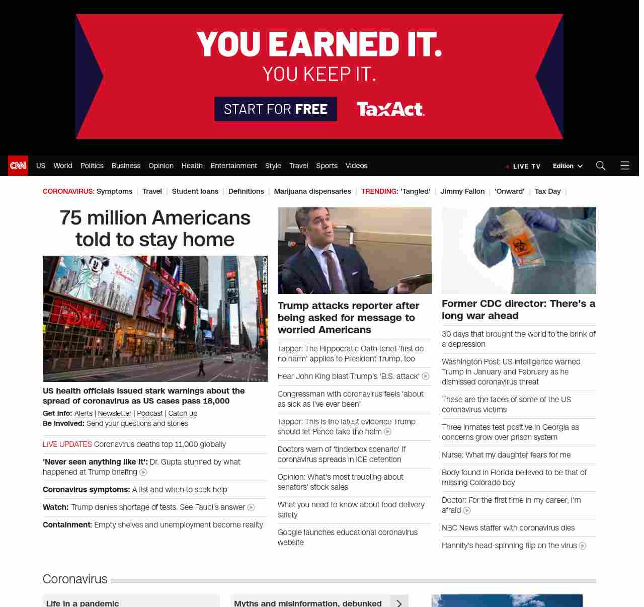 CNN3: “:”u003cstrong>US health officials issued stark warnings about the spread of coronavirus as US cases passed 18, 000u003c/strong>”, “BANNER=|pagerendered| ((lubuntu at wor2))