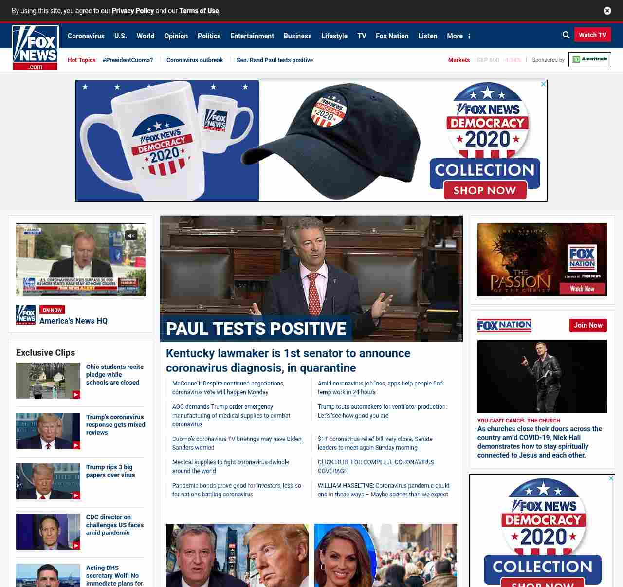 FN: [[PAUL TESTS POSITIVE]] Kentucky lawmaker is 1st senator to announce coronavirus diagnosis, in quarantine ((lubuntu at wor2))