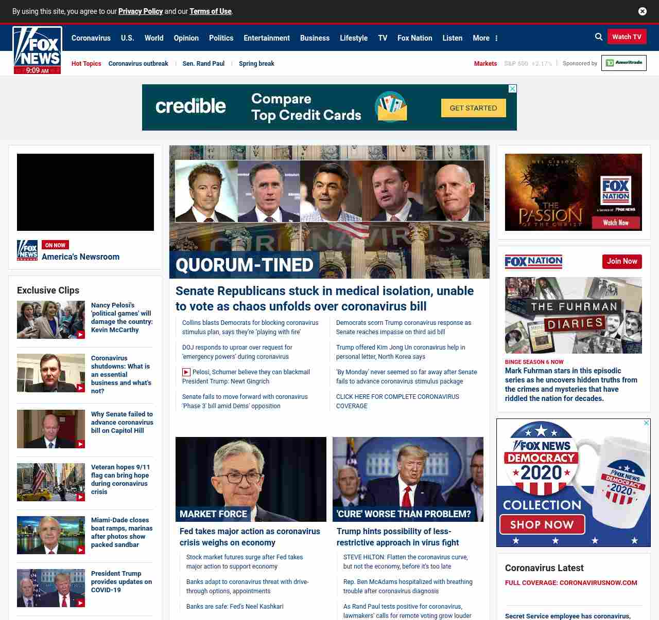 FN: [[QUORUM-TINED]] Senate Republicans stuck in medical isolation, unable to vote as chaos unfolds over coronavirus bill ((lubuntu at wor2))