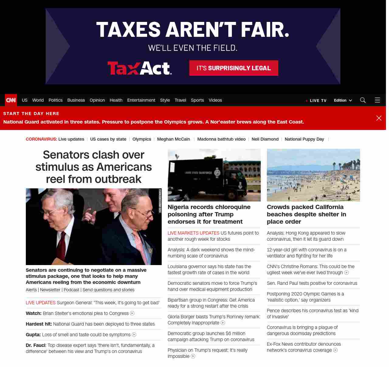 || screaming-banner-text banner-text-size–char-47″ data-analytics=”_list-hierarchical-xs_article_”> Senators clash over stimulus as Americans reel from outbreak ||” , title: “CNN – Breaking News, Latest News and Videos” , siblings: {“articleList”:[{“uri”:”/2020/03/23/politics/coronavirus-economic-stimulus-senate/index.html”,”headline”:”u003cstrong>Tensions run high:u003c/strong> Senators clash over stimulus”,”thumbnail”:”//cdn.cnn.com/cnnnext/dam/assets/200309180917-mcconnell-schumer-file-small-11.jpg”,”duration”:””,”description”:”u003ca href=”https://www.cnn.com/specials/mobile-apps” target=”_blank”>Alertsu003c/a> | u003ca href=”https://www.cnn.com/specials/coronavirus-newsletter?utm_source=hp&source=hp” target=”_blank”>Newsletteru003c/a> | u003ca href=”https://www.cnn.com/audio/podcasts/corona-virus”>Podcastu003c/a> | u003ca href=”http://www.cnn.com/2020/03/20/us/coronavirus-healthcare-worker-callout/index.html” target=”_blank”>Send questions and storiesu003c/a>”,”layout”:””