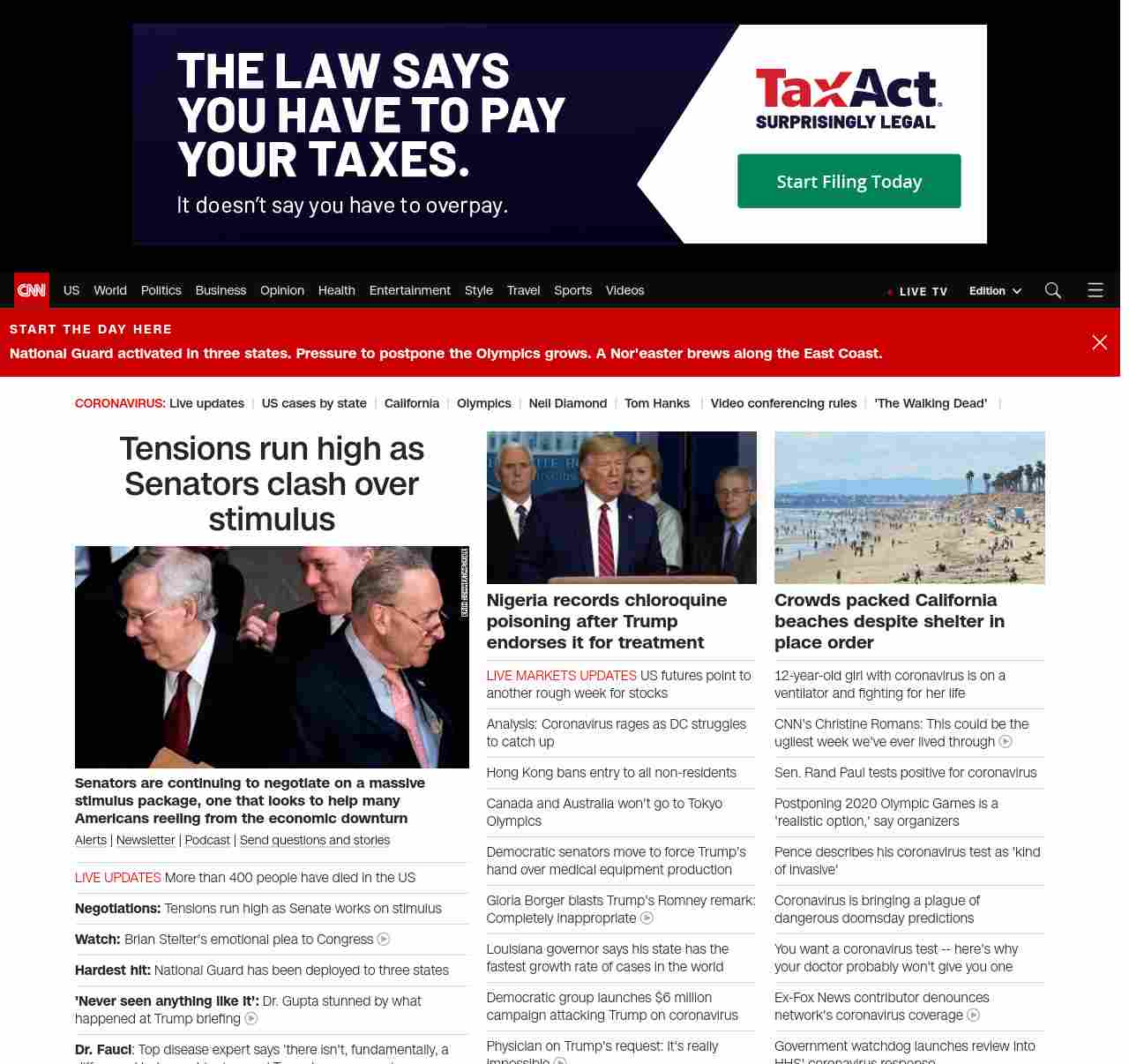 || screaming-banner-text banner-text-size–char-47″ data-analytics=”_list-hierarchical-xs_article_”> Tensions run high as Senators clash over stimulus ||” , title: “CNN – Breaking News, Latest News and Videos” , siblings: {“articleList”:[{“uri”:”/2020/03/23/politics/coronavirus-economic-stimulus-senate/index.html”,”headline”:”u003cstrong>Senators are continuing to negotiate on a massive stimulus package, one that looks to help many Americans reeling from the economic downturnu003c/strong>”,”thumbnail”:”//cdn.cnn.com/cnnnext/dam/assets/200309180917-mcconnell-schumer-file-small-11.jpg”,”duration”:””,”description”:”u003ca href=”https://www.cnn.com/specials/mobile-apps” target=”_blank”>Alertsu003c/a> | u003ca href=”https://www.cnn.com/specials/coronavirus-newsletter?utm_source=hp&source=hp” target=”_blank”>Newsletteru003c/a> | u003ca href=”https://www.cnn.com/audio/podcasts/corona-virus”>Podcastu003c/a> | u003ca href=”http://www.cnn.com/2020/03/20/us/coronavirus-healthcare-worker-callout/index.html” target=”_blank”>Send questions and storiesu003c/a>”,”layout”:””
