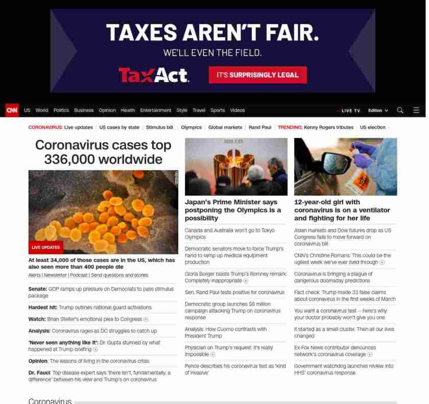 || screaming-banner-text banner-text-size–char-41″ data-analytics=”_list-hierarchical-xs_article_”> Coronavirus cases top 336,000 worldwide ||” , title: “CNN – Breaking News, Latest News and Videos” , siblings: {“articleList”:[{“uri”:”/world/live-news/coronavirus-outbreak-03-23-20-intl-hnk/index.html”,”headline”:”u003cstrong>At least 34,000 of those cases are in the US, which has also seen more than 400 people dieu003c/strong>”,”thumbnail”:”//cdn.cnn.com/cnnnext/dam/assets/200213175739-03-coronavirus-0213-small-11.jpg”,”duration”:””,”description”:”u003ca href=”https://www.cnn.com/specials/mobile-apps” target=”_blank”>Alertsu003c/a> | u003ca href=”https://www.cnn.com/specials/coronavirus-newsletter?utm_source=hp&source=hp” target=”_blank”>Newsletteru003c/a> | u003ca href=”https://www.cnn.com/audio/podcasts/corona-virus”>Podcastu003c/a> | u003ca href=”http://www.cnn.com/2020/03/20/us/coronavirus-healthcare-worker-callout/index.html” target=”_blank”>Send questions and storiesu003c/a>”,”layout”:””