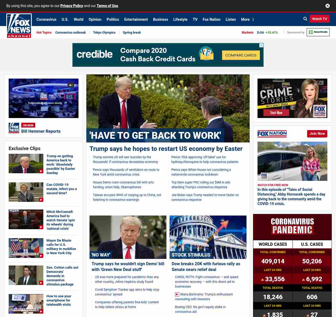 FN: [[' HAVE TO GET BACK TO WORK' ]] Trump, during Fox News coronavirus town hall, calls for restarting economy by Easter ((lubuntu at wor2))