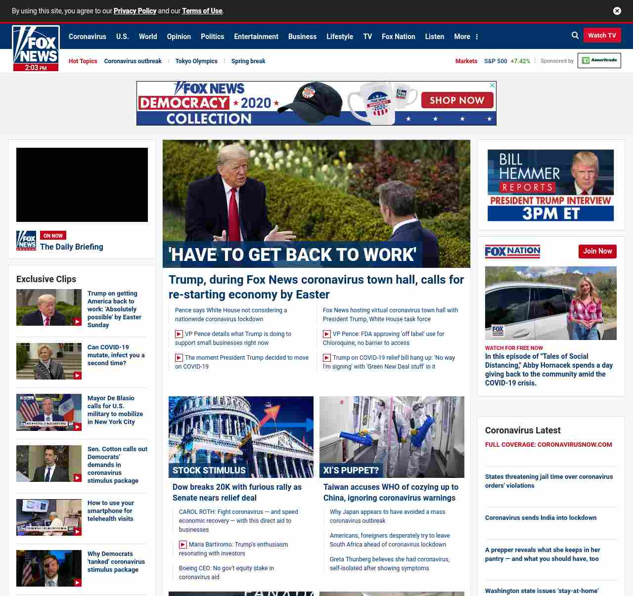 FN: [[' HAVE TO GET BACK TO WORK' ]] Trump, during Fox News coronavirus town hall, calls for re-starting economy by Easter ((lubuntu at wor2))