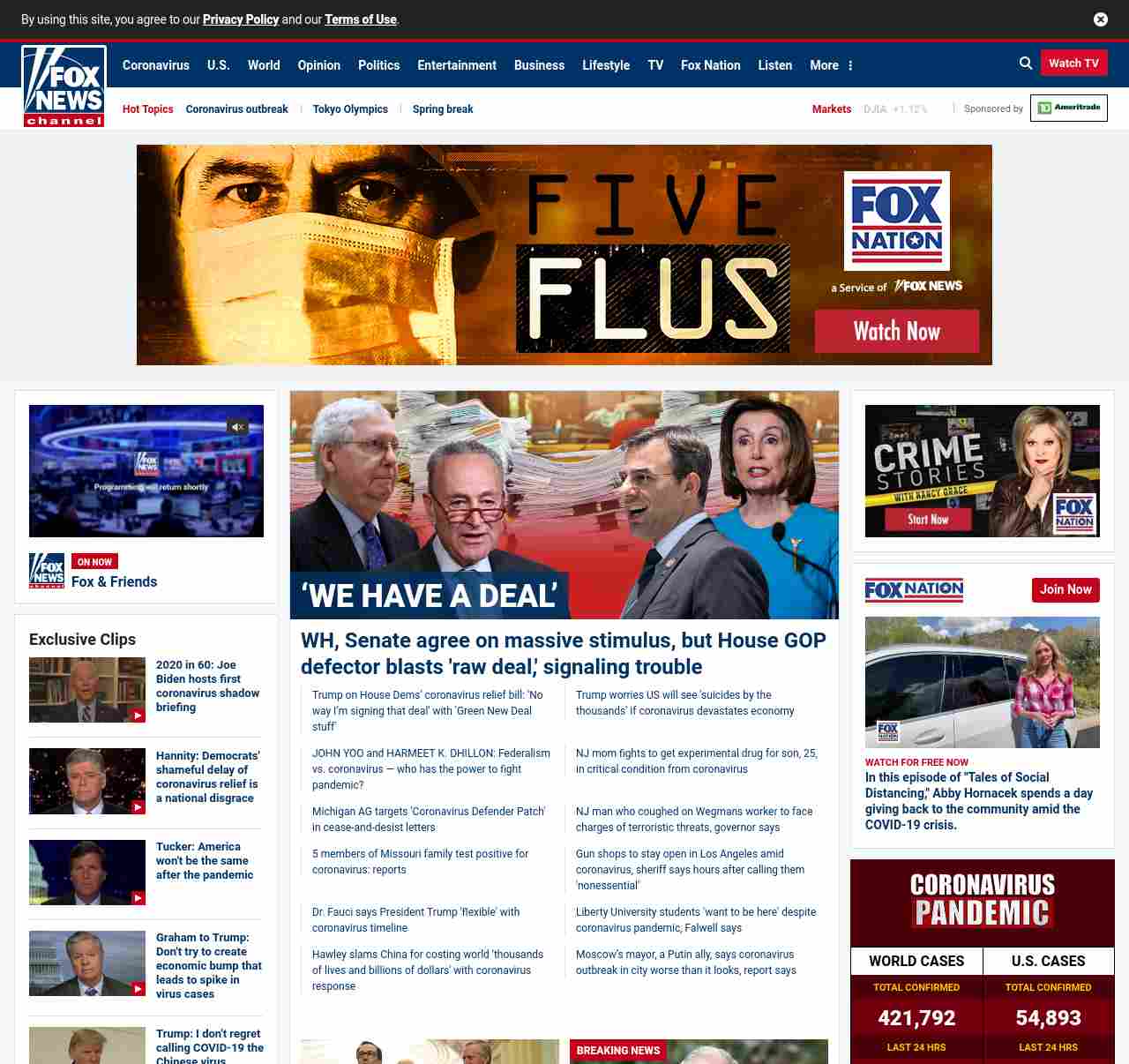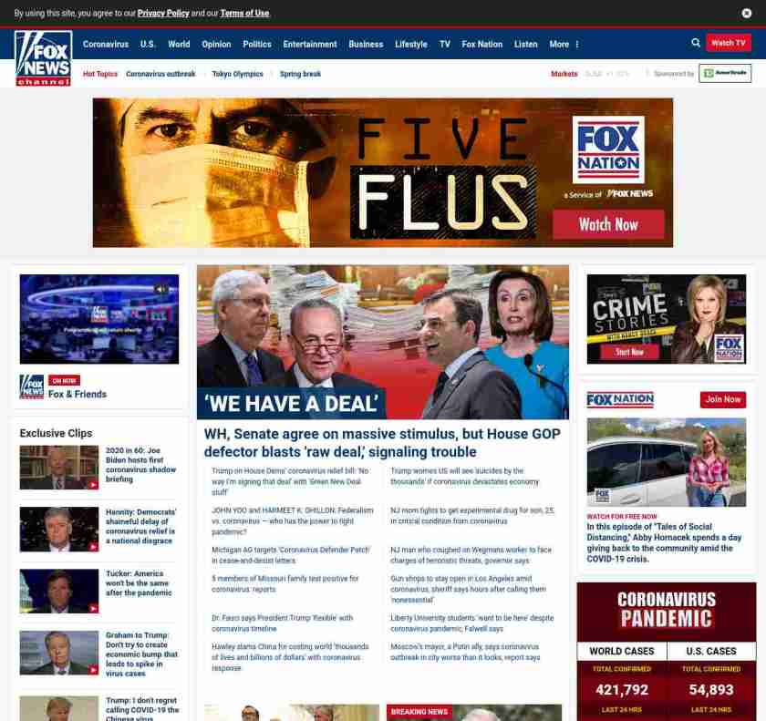 FN: [[‘WE HAVE A DEAL’]] WH, Senate agree on massive stimulus, but House GOP defector blasts 'raw deal,' signaling trouble ((lubuntu at wor2))