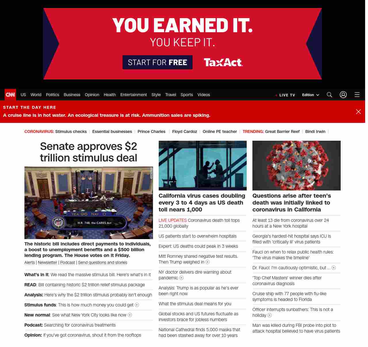 || screaming-banner-text banner-text-size–char-44″ data-analytics=”_list-hierarchical-xs_article_”> Here’s what’s in the massive stimulus bill ||” , title: “CNN – Breaking News, Latest News and Videos” , siblings: {“articleList”:[{“uri”:”/2020/03/25/politics/stimulus-package-details-coronavirus/index.html”,”headline”:”u003cstrong>The historic $2 trillion deal will go to the House for a vote Friday. Here’s what you can expect in the largest emergency aid package in US history.u003c/strong>”,”thumbnail”:”//cdn.cnn.com/cnnnext/dam/assets/200325154804-us-capitol-0325-small-11.jpg”,”duration”:””,”description”:”u003ca href=”https://www.cnn.com/specials/mobile-apps” target=”_blank”>Alertsu003c/a> | u003ca href=”https://www.cnn.com/specials/coronavirus-newsletter?utm_source=hp&source=hp” target=”_blank”>Newsletteru003c/a> | u003ca href=”https://www.cnn.com/audio/podcasts/corona-virus”>Podcastu003c/a> | u003ca href=”http://www.cnn.com/2020/03/20/us/coronavirus-healthcare-worker-callout/index.html” target=”_blank”>Send questions and storiesu003c/a>”,”layout”:””
