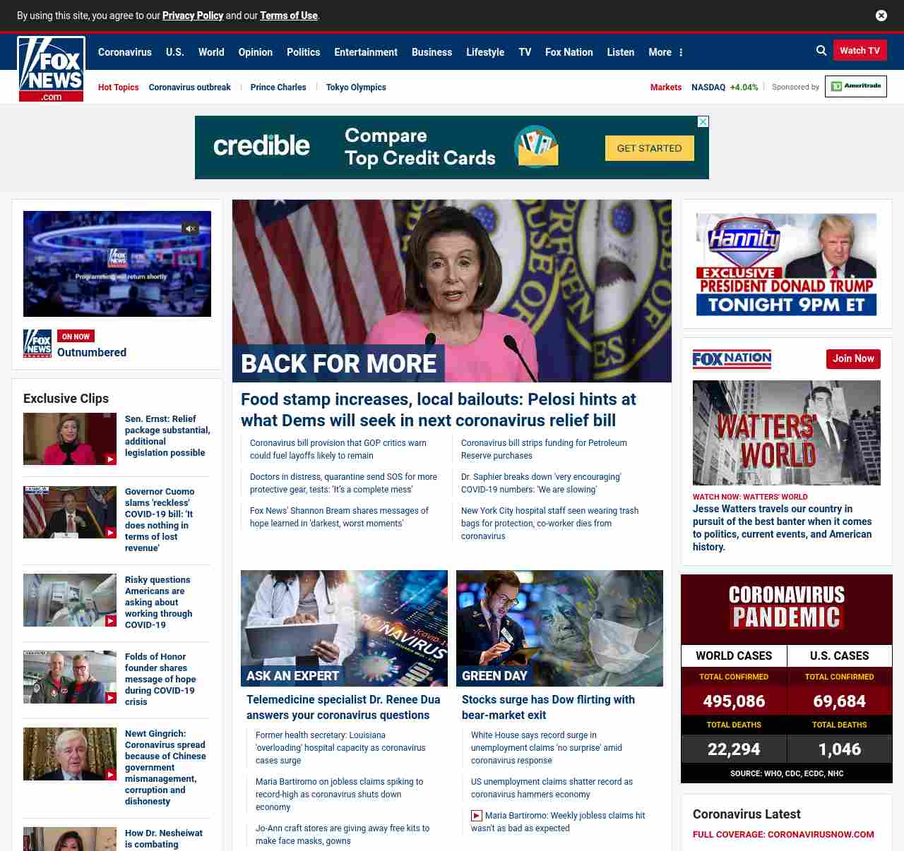 FN: [[BACK FOR MORE]] Food stamp increases, local bailouts: Pelosi hints at what Dems will seek in next coronavirus relief bill ((lubuntu at wor2))