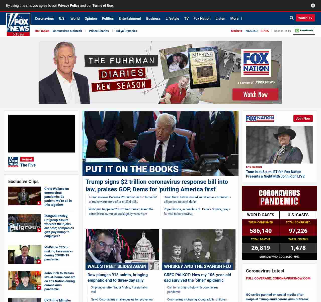 FN: [[PUT IT ON THE BOOKS]] Trump signs $2 trillion coronavirus response bill into law, praises GOP, Dems for ' putting America first' ((lubuntu at wor2))