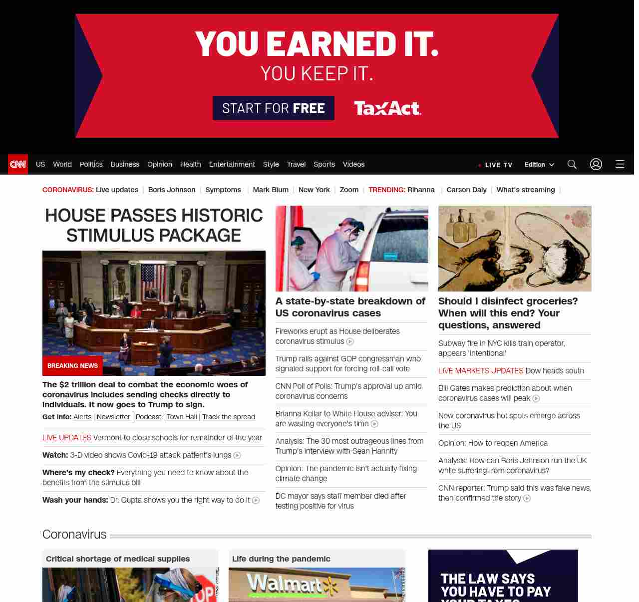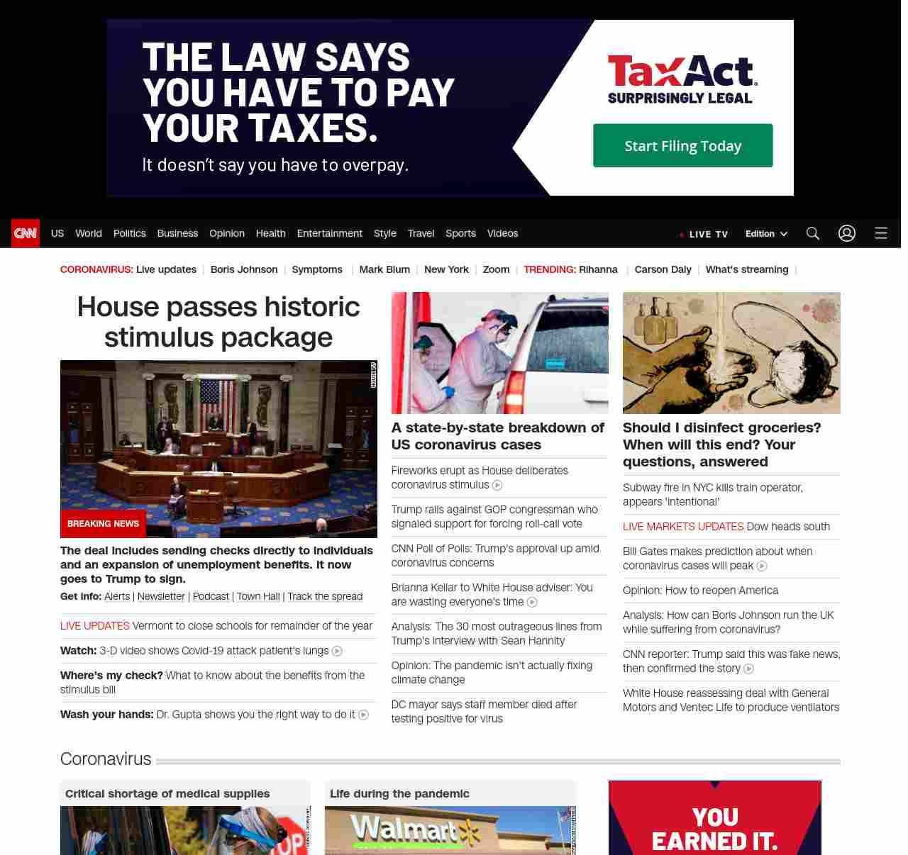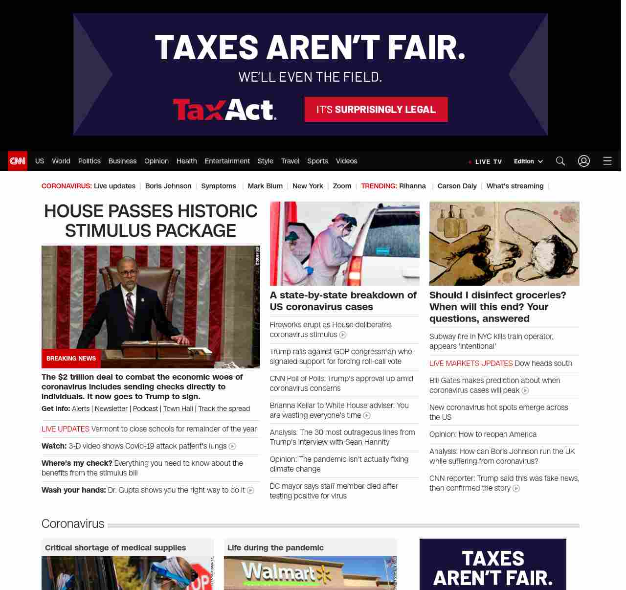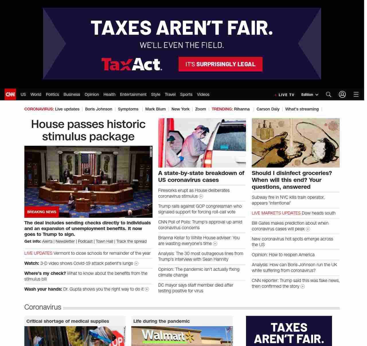 || screaming-banner-text banner-text-size–char-41-uc” data-analytics=”_list-hierarchical-xs_article_”> HOUSE PASSES HISTORIC STIMULUS PACKAGE ||” , title: “CNN – Breaking News, Latest News and Videos” , siblings: {“articleList”:[{“uri”:”/2020/03/27/politics/coronavirus-stimulus-house-vote/index.html”,”headline”:”u003cstrong>The $2 trillion deal to combat the economic woes of coronavirus includes sending checks directly to individuals. It now goes to Trump to sign.u003c/strong>”,”thumbnail”:”//cdn.cnn.com/cnnnext/dam/assets/200327133410-02-house-passes-stimulus-bill-0327-small-11.jpg”,”duration”:””,”description”:”u003cstrong>Get info:u003c/strong> u003ca href=”https://www.cnn.com/specials/mobile-apps” target=”_blank”>Alertsu003c/a> | u003ca href=”https://www.cnn.com/specials/coronavirus-newsletter?utm_source=hp&source=hp” target=”_blank”>Newsletteru003c/a> | u003ca href=”https://www.cnn.com/audio/podcasts/corona-virus”>Podcastu003c/a> | u003ca href=”http://www.cnn.com/2020/03/26/app-news-section/full-coronavirus-town-hall-march-26-2020-app/index.html” target=”_blank”>Town Hallu003c/a> | u003ca href=”https://www.cnn.com/interactive/2020/health/coronavirus-maps-and-cases/” target=”_blank”>Track the spreadu003c/a>”,”layout”:””