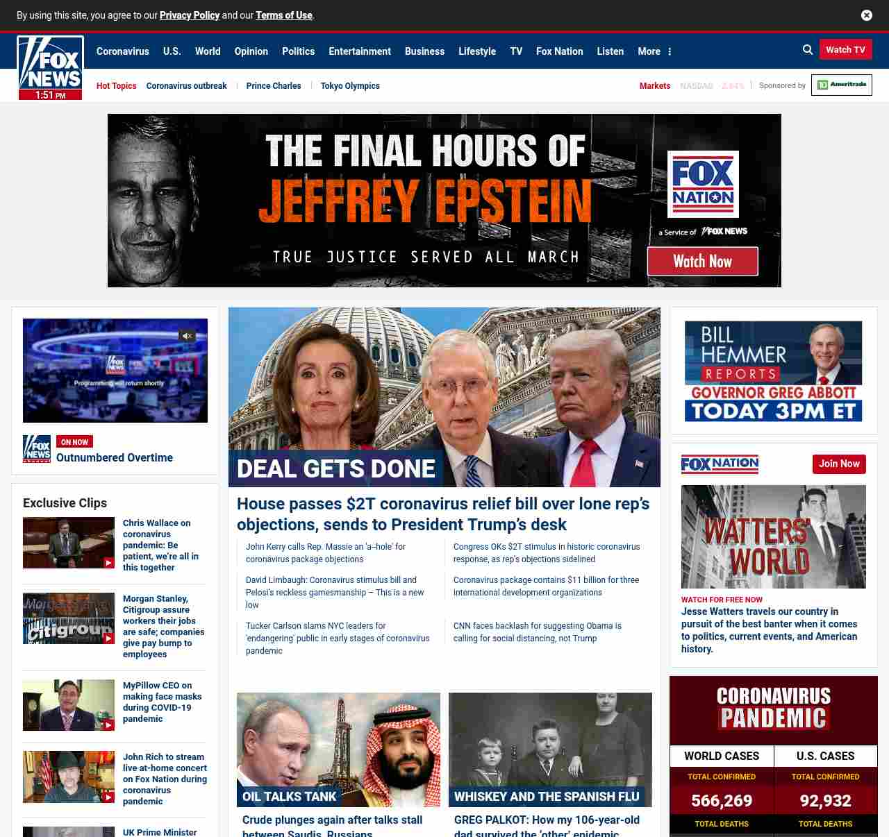 FN: [[DEAL GETS DONE]] House passes $2T coronavirus relief bill over lone rep’s objections, sends to President Trump’s desk ((lubuntu at wor2))