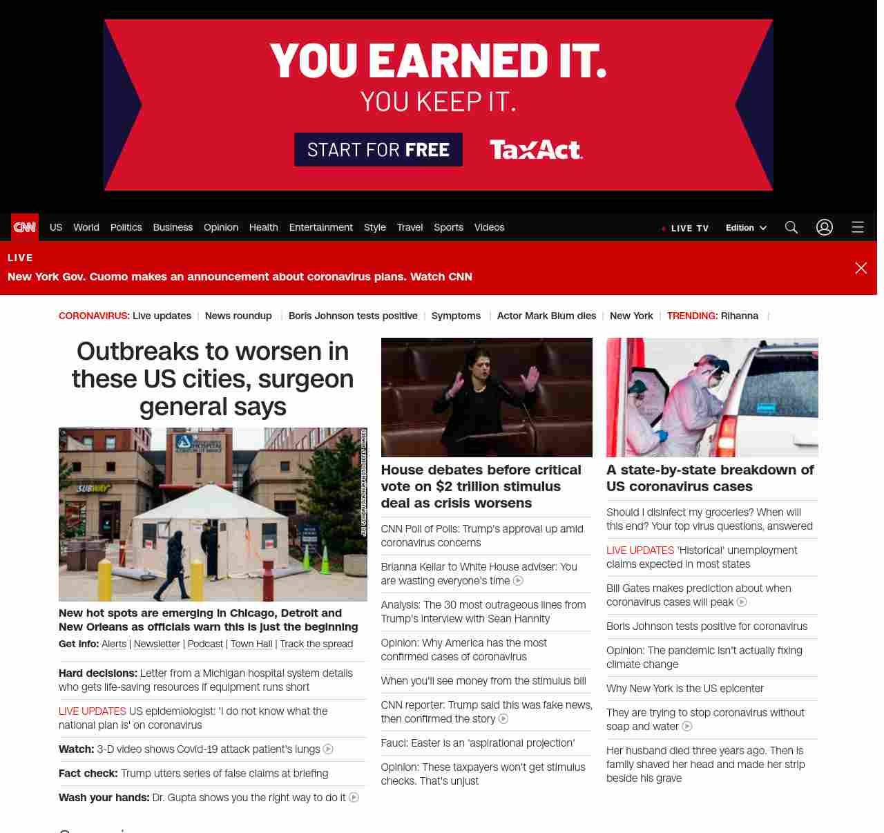 || screaming-banner-text banner-text-size–char-47″ data-analytics=”_list-hierarchical-xs_hyperlink_”> Outbreaks to worsen in these US cities, surgeon general says ||” , title: “CNN – Breaking News, Latest News and Videos” , siblings: {“articleList”:[{“uri”:”/2020/03/27/health/michigan-henry-ford-letter-coronavirus/index.html”,”headline”:”u003cstrong>Hard decisions:u003c/strong> Letter from a Michigan hospital system details who gets life-saving resources if equipment runs short”,”thumbnail”:”//cdn.cnn.com/cnnnext/dam/assets/200327095540-01-coronavirus-michigan-0325-small-11.jpg”,”duration”:””,”description”:”A Michigan health system has acknowledged it’s preparing for hard life-and-death decisions after a hospital letter was circulated online detailing who would be able to receive life-saving resources during the coronavirus pandemic if there’s not enough equipment. “,”layout”:””