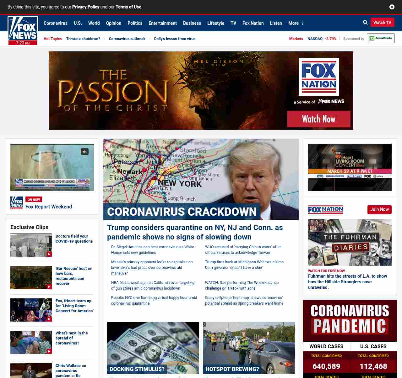 FN: [[CORONAVIRUS CRACKDOWN]] Trump considers quarantine on NY, NJ and Conn. as pandemic shows no signs of slowing down ((lubuntu at wor2))