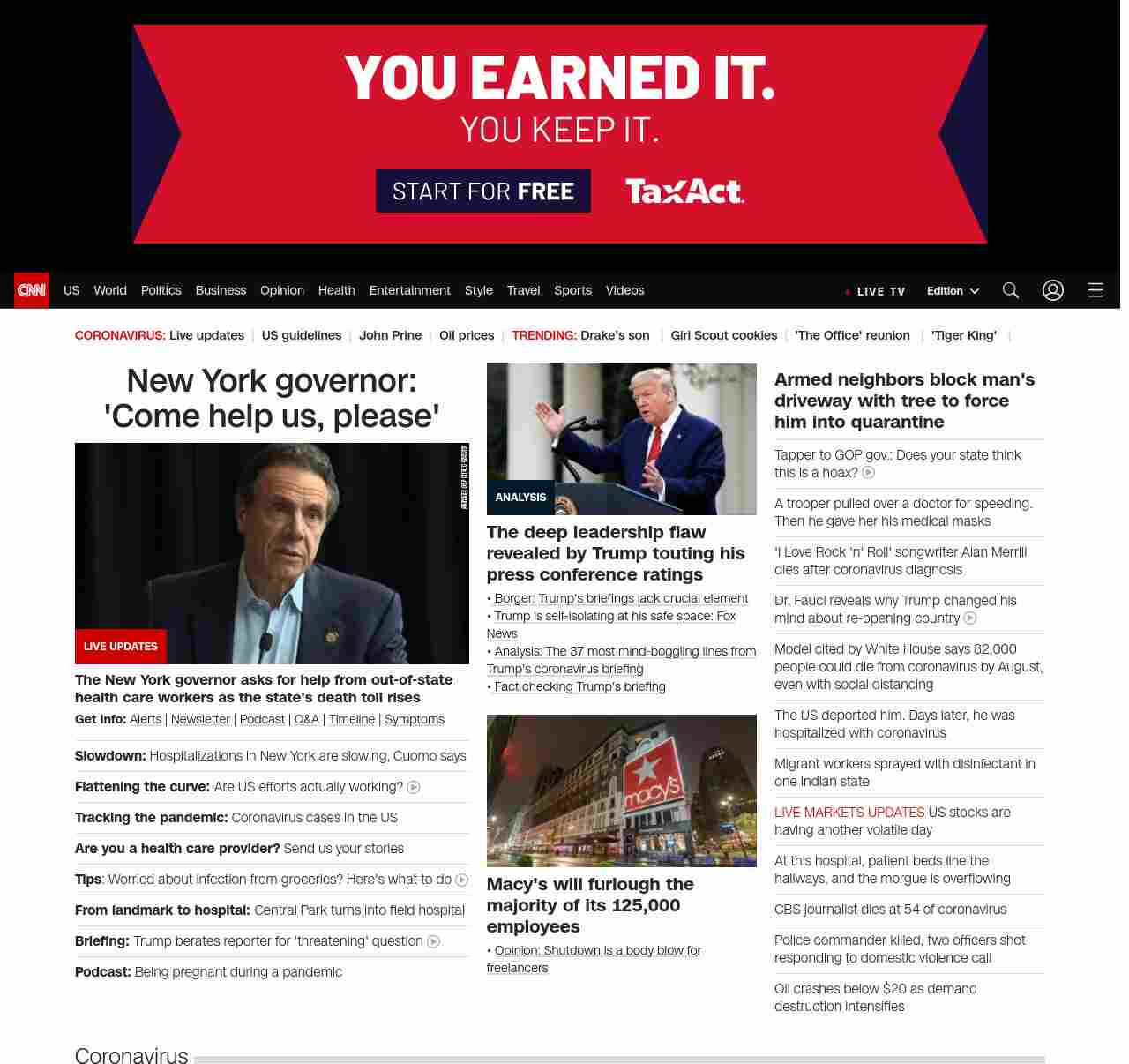 || screaming-banner-text banner-text-size–char-44″ data-analytics=”_list-hierarchical-xs_hyperlink_”> New York governor: ‘Come help us, please’ ||” , title: “CNN – Breaking News, Latest News and Videos” , siblings: {“articleList”:[{“uri”:”/2020/03/30/politics/cnn-poll-americans-coronavirus-government-approval/index.html”,”headline”:”u003cstrong>US is split on the federal handling of the pandemic, but an increasing number say they feel prepared to manage an infection in their familyu003c/strong>”,”thumbnail”:”//cdn.cnn.com/cnnnext/dam/assets/200330012544-01-coronavirus-new-york-0329-small-11.jpg”,”duration”:””,”description”:”u003cstrong>Get info:u003c/strong> u003ca href=”https://www.cnn.com/specials/mobile-apps” target=”_blank”>Alertsu003c/a> | u003ca href=”https://www.cnn.com/specials/coronavirus-newsletter?utm_source=hp&source=hp” target=”_blank”>Newsletteru003c/a> | u003ca href=”https://www.cnn.com/audio/podcasts/corona-virus”>Podcastu003c/a> | u003ca href=”https://www.cnn.com/interactive/2020/health/coronavirus-questions-answers/” target=”_blank”>Q&Au003c/a> | u003ca href=”https://www.cnn.com/2020/02/06/health/wuhan-coronavirus-timeline-fast-facts/index.html” target=”_blank”>Timelineu003c/a> | u003ca href=”https://www.cnn.com/2020/03/28/health/coronavirus-symptoms-list-what-to-do-wellness/index.html” target=”_blank”>Symptomsu003c/a>”,”layout”:””