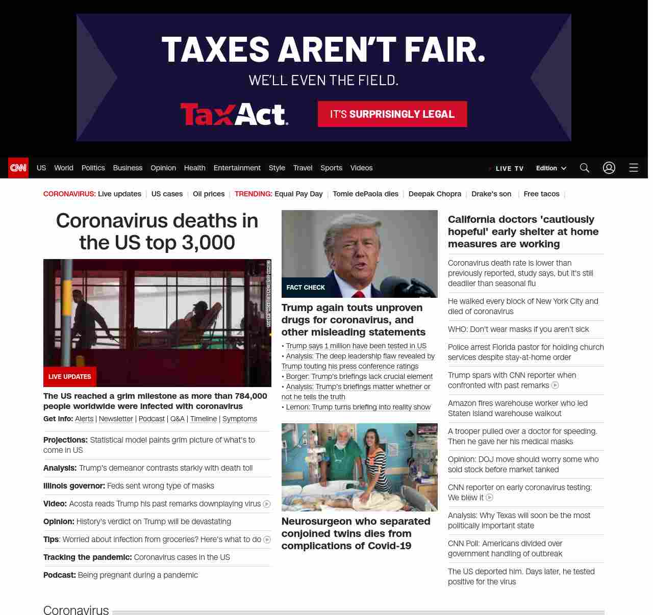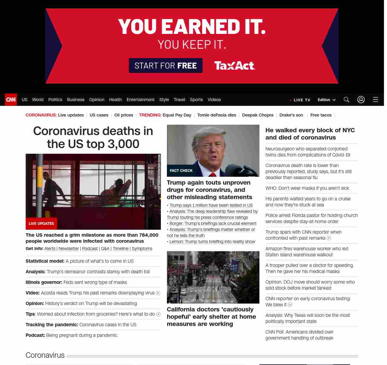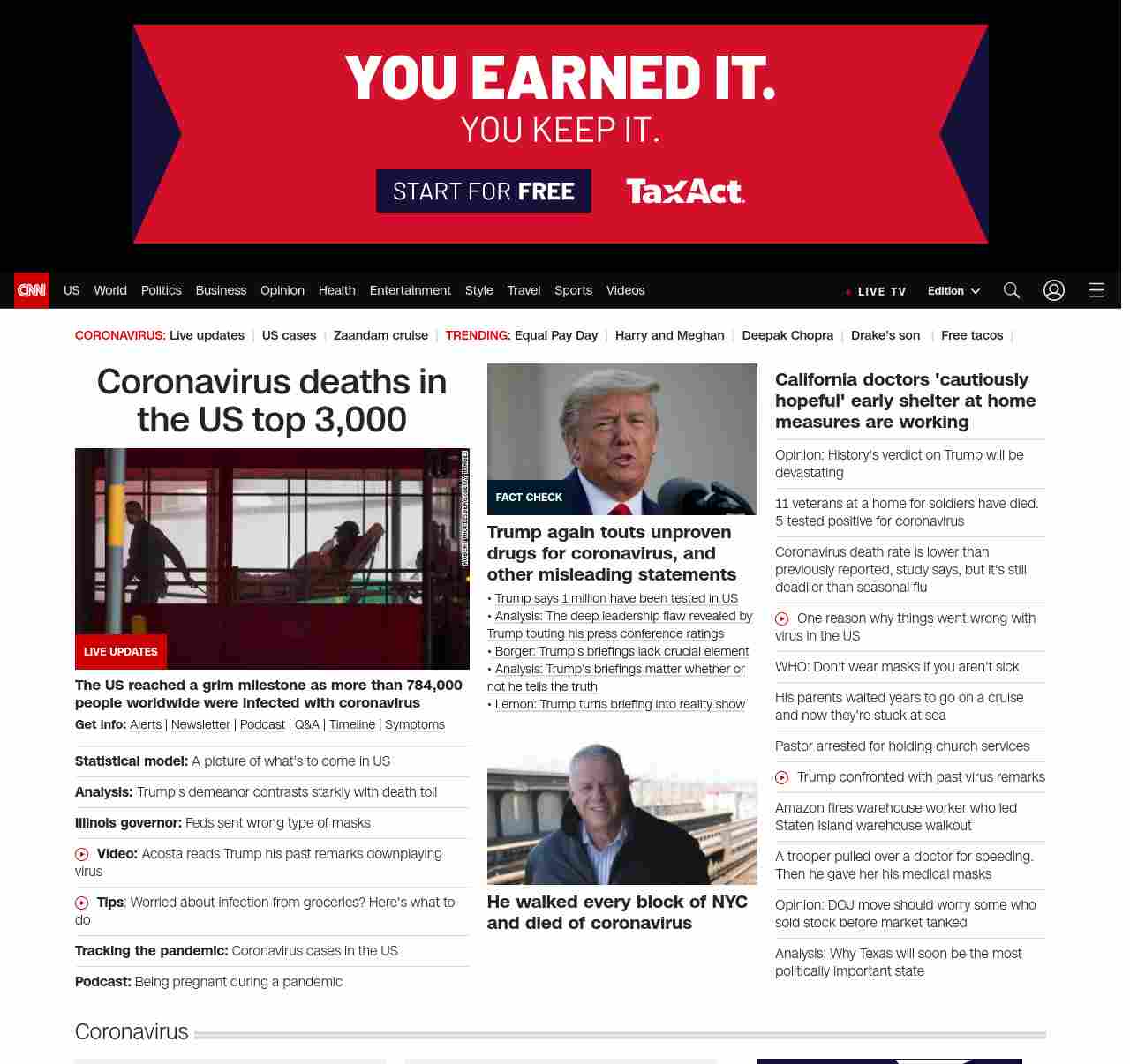 || screaming-banner-text banner-text-size–char-41″ data-analytics=”_list-hierarchical-xs_hyperlink_”> Coronavirus deaths in the US top 3,000 ||” , title: “CNN – Breaking News, Latest News and Videos” , siblings: {“articleList”:[{“uri”:”/2020/03/30/health/coronavirus-us-ihme-model-us/index.html”,”headline”:”u003cstrong>Projections: u003c/strong>Statistical model paints grim picture of what’s to come in US”,”thumbnail”:”//cdn.cnn.com/cnnnext/dam/assets/200328031805-01-coronavirus-new-york-0327-small-11.jpg”,”duration”:””,”description”:””,”layout”:””
