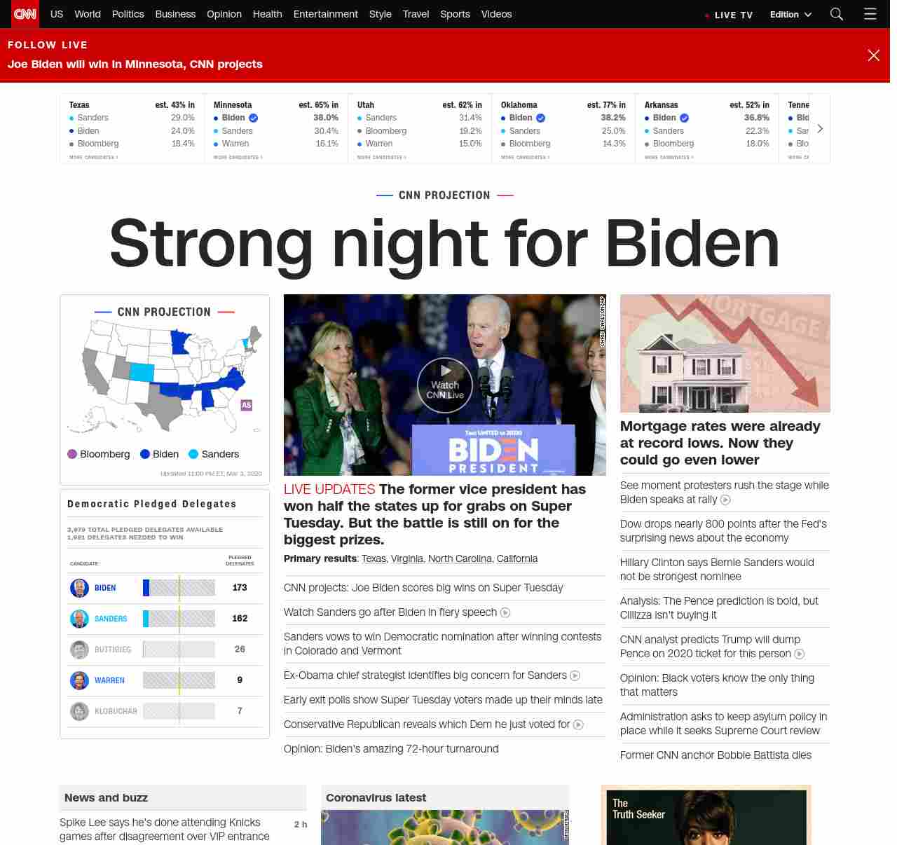 CNN3: “:”u003cstrong>Biden wins Minnesota after Klobuchar, the state’s US senator, dropped out of the race and endorsed him yesterdayu003c/strong>”, “BANNER=|pagerendered| ((lubuntu at wor2))