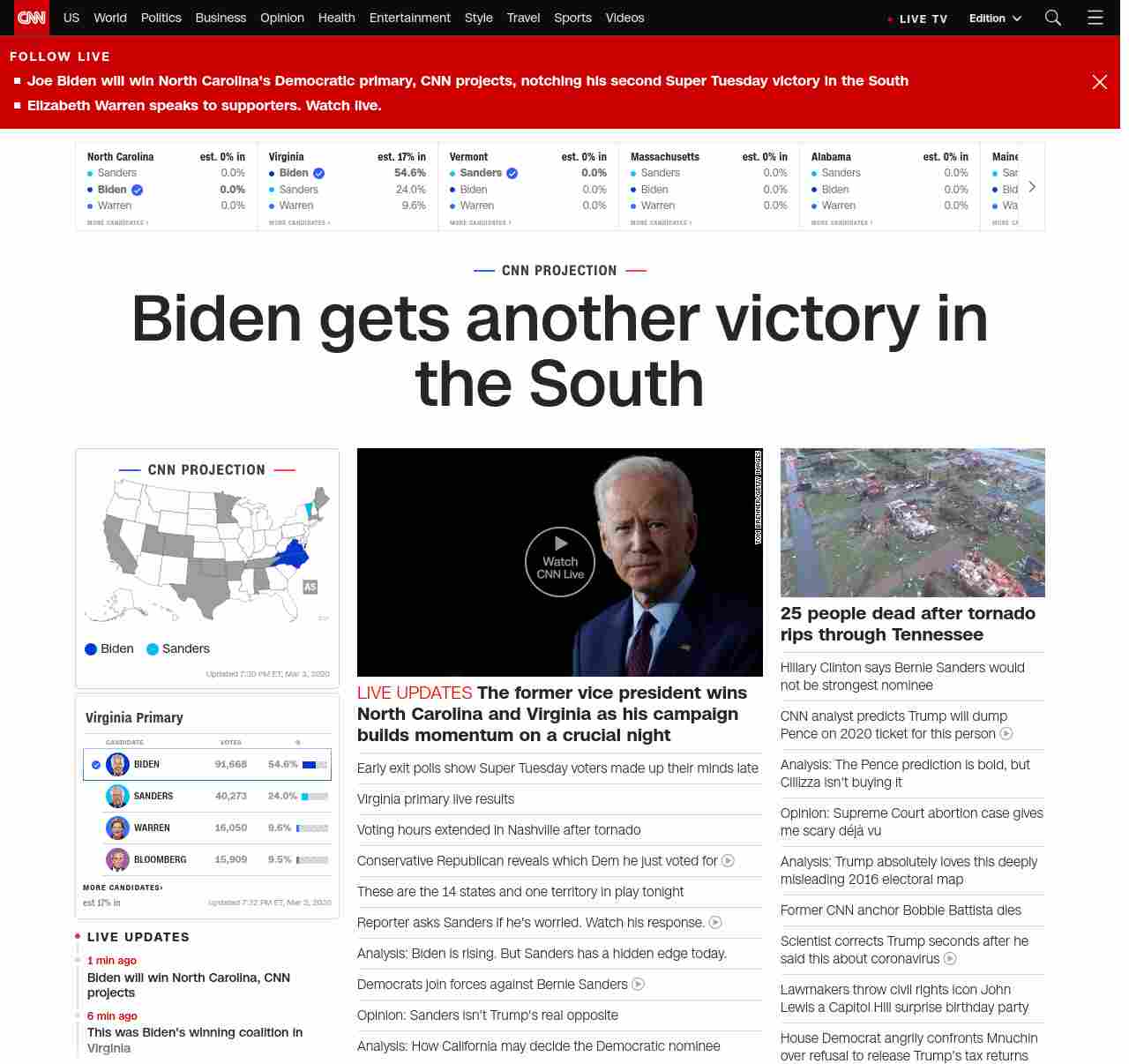 || banner-text–natural”> Biden notches big early victory ||” , title: “CNN – Breaking News, Latest News and Videos” , siblings: {“articleList”:[{“uri”:”/politics/live-news/super-tuesday-results-2020/index.html”,”headline”:”u003cstrong>The former vice president wins Virginia in a sign his campaign has momentum. Sanders wins Vermont.u003c/strong>”,”thumbnail”:”//cdn.cnn.com/cnnnext/dam/assets/200303181315-03-biden-sanders-split-small-11.jpg”,”duration”:””,”description”:””,”layout”:””