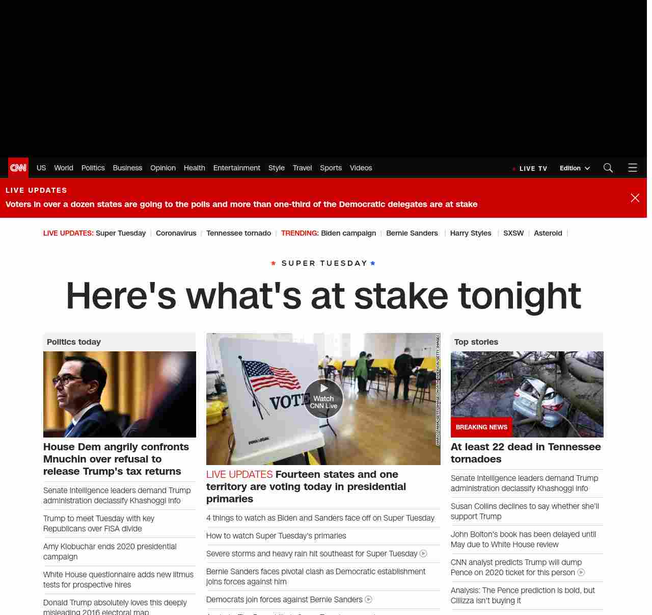 || banner-text–natural”> Here’s what’s at stake tonight ||” , title: “CNN – Breaking News, Latest News and Videos” , siblings: {“articleList”:[{“uri”:”/2020/03/03/politics/steven-mnuchin-trump-taxes-bill-pascrell/index.html”,”headline”:”House Democrat angrily confronts Mnuchin over refusal to release Trump’s tax returns”,”thumbnail”:”//cdn.cnn.com/cnnnext/dam/assets/200303105041-steve-mnuchin-0212-small-11.jpg”,”duration”:””,”description”:”A House Democrat and Treasury Secretary Steve Mnuchin were involved in a testy exchange Tuesday over Mnuchin’s refusal to release u003ca href=”https://www.cnn.com/specials/politics/president-donald-trump-45″ target=”_blank”>President Donald Trump’su003c/a> tax returns to the House Ways and Means Committee.”,”layout”:””