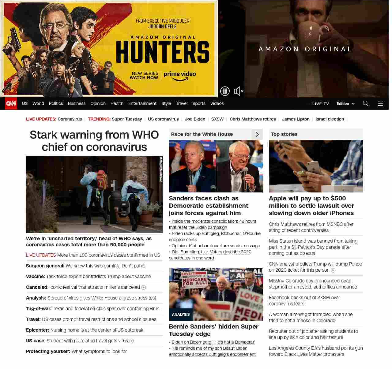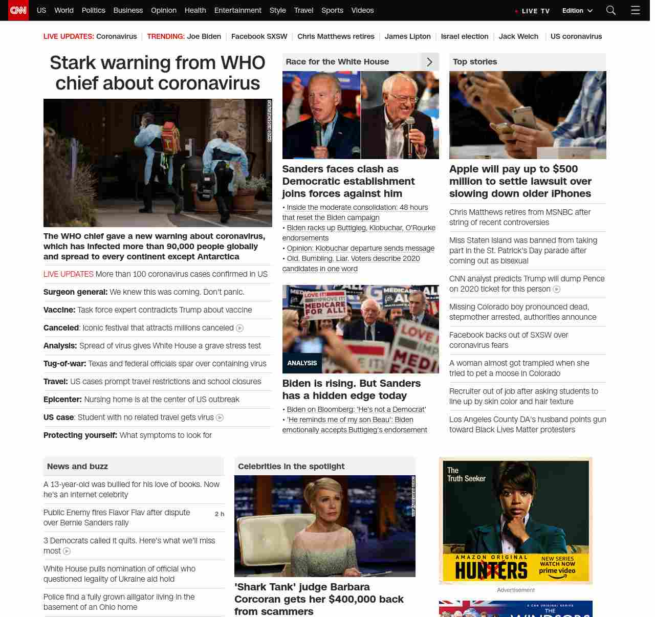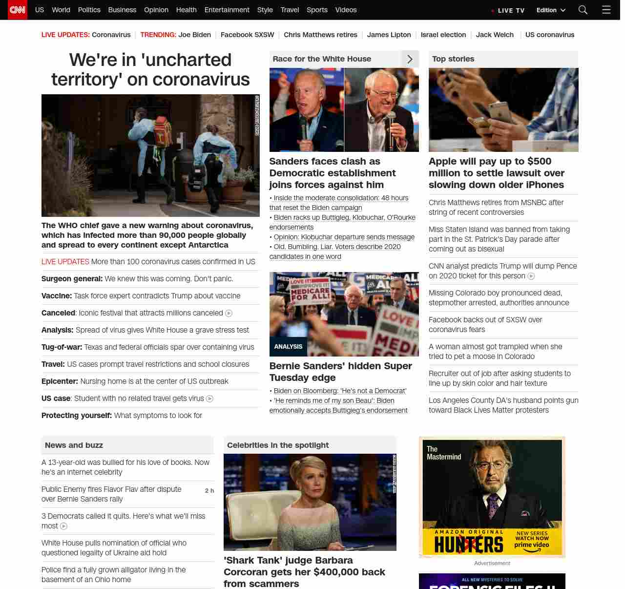 || screaming-banner-text banner-text-size–char-47″ data-analytics=”_list-hierarchical-xs_article_”> We’re in ‘uncharted territory’ on coronavirus ||” , title: “CNN – Breaking News, Latest News and Videos” , siblings: {“articleList”:[{“uri”:”/2020/03/03/asia/novel-coronavirus-covid-19-intl-hnk/index.html”,”headline”:”u003cstrong>We’re in ‘uncharted territory,’ head of WHO says, as coronavirus cases total more than 90,000 people u003c/strong>”,”thumbnail”:”//cdn.cnn.com/cnnnext/dam/assets/200302151908-06-coronavirus-0301-washington-small-11.jpg”,”duration”:””,”description”:”The head of the World Health Organization (WHO) said that public health officials are operating in “unchartered territory” as they combat the spread of the u003ca href=”https://www.cnn.com/specials/asia/coronavirus-outbreak-intl-hnk” target=”_blank”>novel coronavirusu003c/a>, which has infected more than 90,000 people u003ca href=”https://www.cnn.com/2020/01/29/asia/coronavirus-cases-worldwide-intl-hnk/index.html” target=”_blank”>across 73 countries and territoriesu003c/a> as of Monday evening.”,”layout”:””