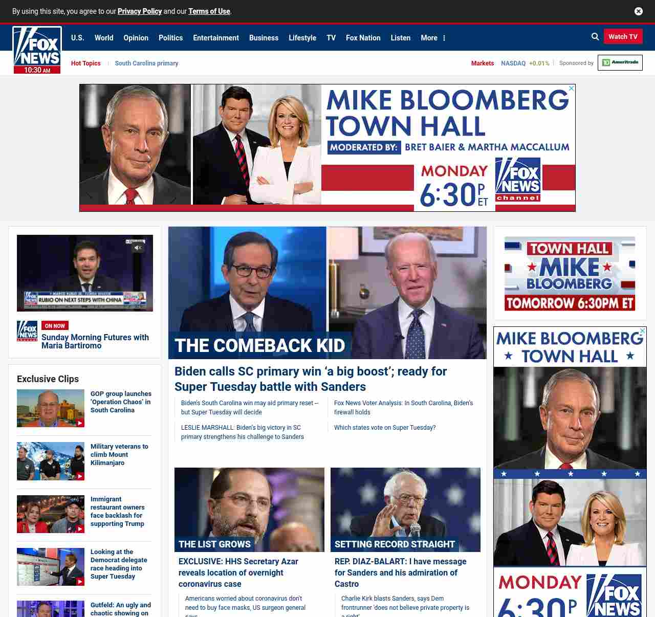 FN: [[THE COMEBACK KID]] Biden calls SC primary win ‘a big boost’; ready for Super Tuesday battle with Sanders ((lubuntu at wor2))