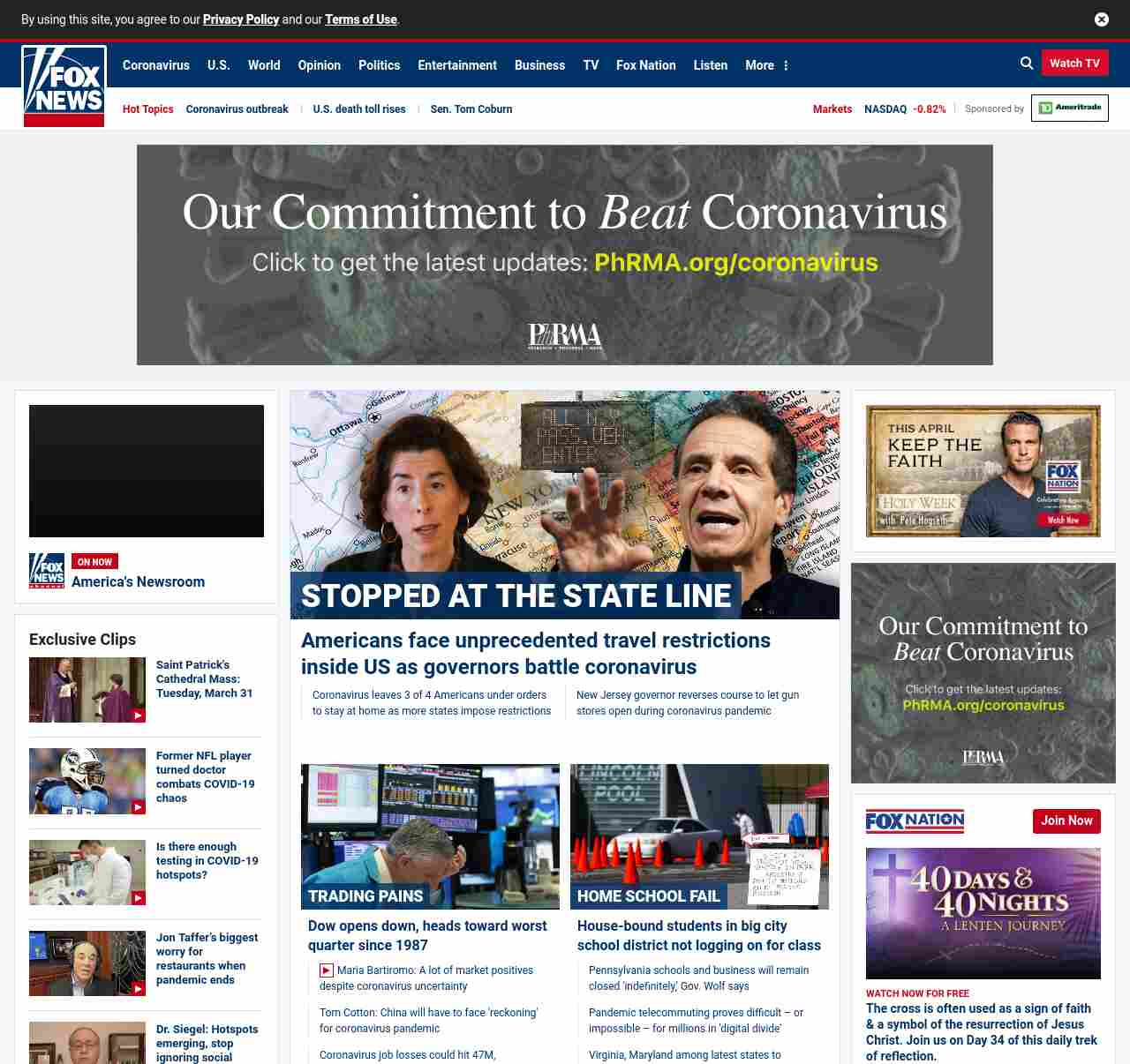 FN: [[STOPPED AT THE STATE LINE]] Americans face unprecedented travel restrictions inside US as governors battle coronavirus ((lubuntu at wor2))