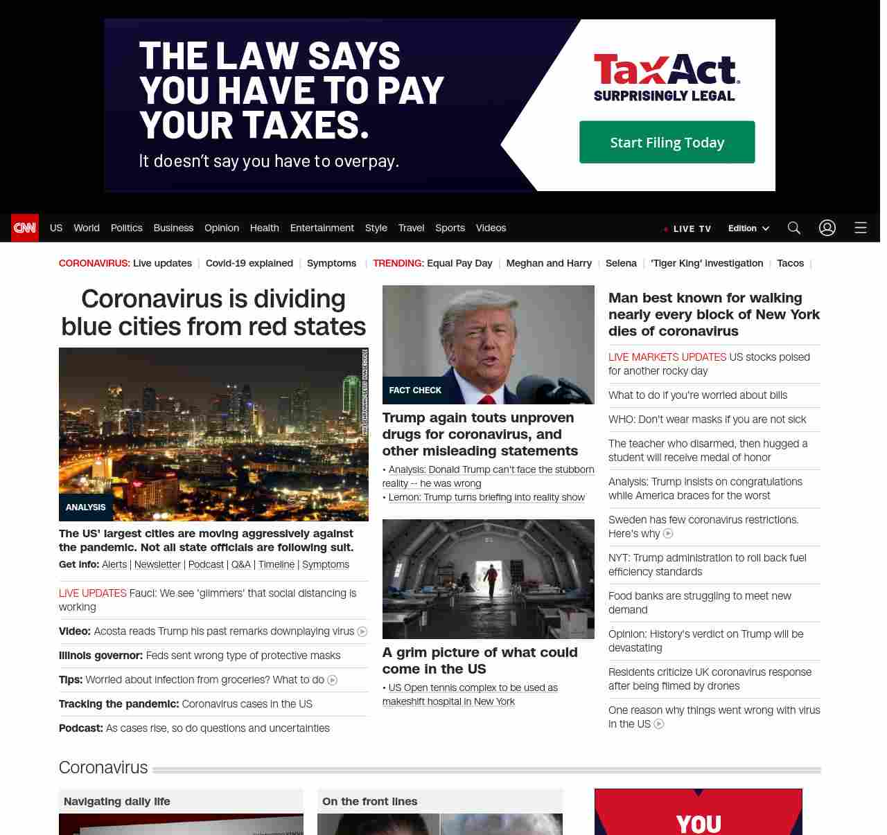 || screaming-banner-text banner-text-size–char-47″ data-analytics=”_list-hierarchical-xs_article_”> Coronavirus is dividing blue cities from red states ||” , title: “CNN – Breaking News, Latest News and Videos” , siblings: {“articleList”:[{“uri”:”/2020/03/31/politics/red-states-blue-cities-coronavirus/index.html”,”headline”:”u003cstrong>The US’ largest cities are moving aggressively against the pandemic. Not all state officials are following suit.u003c/strong>”,”thumbnail”:”//cdn.cnn.com/cnnnext/dam/assets/170408183158-dallas-skyline-file-photo-small-11.jpg”,”duration”:””,”description”:”u003cstrong>Get info:u003c/strong> u003ca href=”https://www.cnn.com/specials/mobile-apps” target=”_blank”>Alertsu003c/a> | u003ca href=”https://www.cnn.com/specials/coronavirus-newsletter?utm_source=hp&source=hp” target=”_blank”>Newsletteru003c/a> | u003ca href=”https://www.cnn.com/audio/podcasts/corona-virus”>Podcastu003c/a> | u003ca href=”https://www.cnn.com/interactive/2020/health/coronavirus-questions-answers/” target=”_blank”>Q&Au003c/a> | u003ca href=”https://www.cnn.com/2020/02/06/health/wuhan-coronavirus-timeline-fast-facts/index.html” target=”_blank”>Timelineu003c/a> | u003ca href=”https://www.cnn.com/2020/03/31/health/coronavirus-symptoms-list-what-to-do-wellness/index.html” target=”_blank”>Symptomsu003c/a>”,”layout”:””