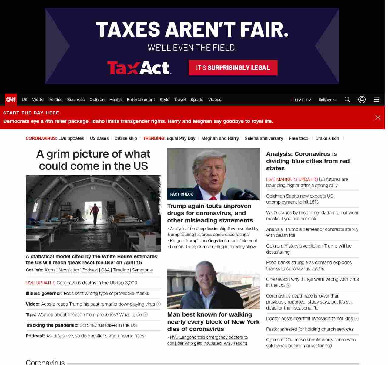 || screaming-banner-text banner-text-size–char-44″ data-analytics=”_list-hierarchical-xs_article_”> A grim picture of what could come in the US ||” , title: “CNN – Breaking News, Latest News and Videos” , siblings: {“articleList”:[{“uri”:”/2020/03/30/health/coronavirus-us-ihme-model-us/index.html”,”headline”:”u003cstrong>A statistical model cited by the White House estimates the US will reach ‘peak resource use’ on April 15u003c/strong>”,”thumbnail”:”//cdn.cnn.com/cnnnext/dam/assets/200331110226-coronavirus-field-hospital-new-york-small-11.jpg”,”duration”:””,”description”:”u003cstrong>Get info:u003c/strong> u003ca href=”https://www.cnn.com/specials/mobile-apps” target=”_blank”>Alertsu003c/a> | u003ca href=”https://www.cnn.com/specials/coronavirus-newsletter?utm_source=hp&source=hp” target=”_blank”>Newsletteru003c/a> | u003ca href=”https://www.cnn.com/audio/podcasts/corona-virus”>Podcastu003c/a> | u003ca href=”https://www.cnn.com/interactive/2020/health/coronavirus-questions-answers/” target=”_blank”>Q&Au003c/a> | u003ca href=”https://www.cnn.com/2020/02/06/health/wuhan-coronavirus-timeline-fast-facts/index.html” target=”_blank”>Timelineu003c/a> | u003ca href=”https://www.cnn.com/2020/03/31/health/coronavirus-symptoms-list-what-to-do-wellness/index.html” target=”_blank”>Symptomsu003c/a>”,”layout”:””