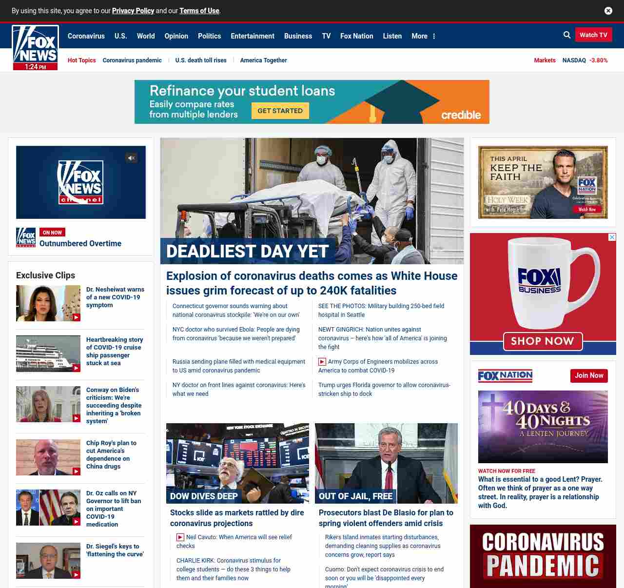 FN: [[DEADLIEST DAY YET]] Explosion of coronavirus deaths comes as White House issues grim forecast of up to 240K fatalities ((lubuntu at wor2))