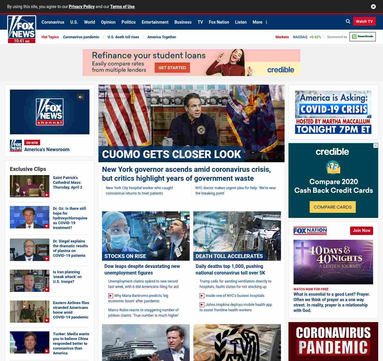 FN: [[CUOMO GETS CLOSER LOOK]] New York governor ascends amid coronavirus crisis, but critics highlight years of government waste ((lubuntu at wor2))