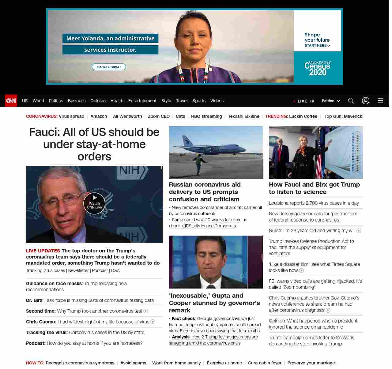 || screaming-banner-text banner-text-size–char-47″ data-analytics=”_list-hierarchical-xs_story_”> One million cases. Changing guidance. Experts have answers ||” , title: “CNN – Breaking News, Latest News and Videos” , siblings: {“articleList”:[{“uri”:”/world/live-news/coronavirus-pandemic-04-02-20-intl/index.html”,”headline”:”u003cstrong>The top doctor on the Trump’s coronavirus team says there should be a federally mandated order, something Trump hasn’t wanted to dou003c/strong>”,”thumbnail”:”//cdn.cnn.com/cnnnext/dam/assets/200402210012-07-coronavirus-town-hall-0402-anthony-fauci-small-11.jpg”,”duration”:””,”description”:”u003ca href=”https://www.cnn.com/interactive/2020/health/coronavirus-us-maps-and-cases/” target=”_blank”>Tracking virus casesu003c/a> | u003ca href=”https://www.cnn.com/specials/coronavirus-newsletter?utm_source=hp&source=hp” target=”_blank”>Newsletteru003c/a> | u003ca href=”https://www.cnn.com/audio/podcasts/corona-virus”>Podcastu003c/a> | u003ca href=”https://www.cnn.com/interactive/2020/health/coronavirus-questions-answers/” target=”_blank”>Q&Au003c/a>”,”layout”:””
