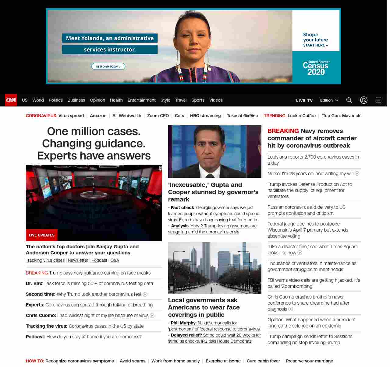 CNN1: FOXVCNN=|One million cases. Changing guidance. Experts have answers| ((lubuntu at wor2))