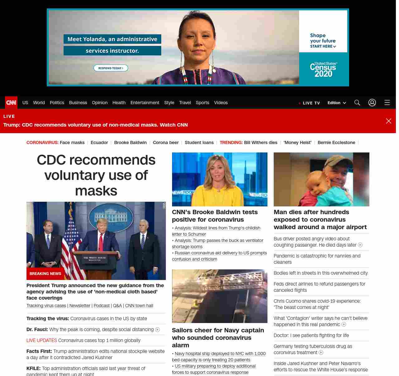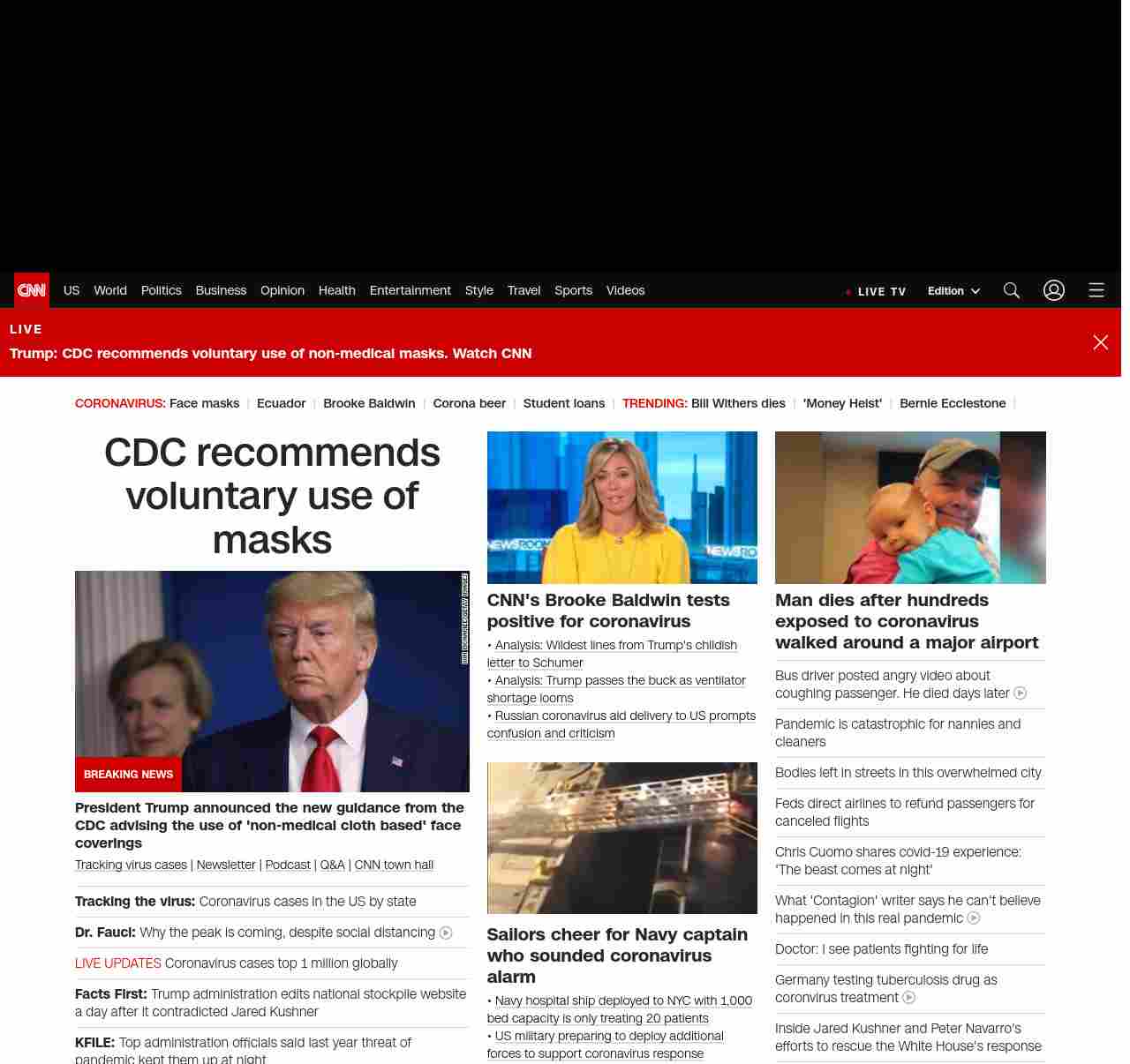|| screaming-banner-text banner-text-size–char-38″ data-analytics=”_list-hierarchical-xs_article_”> CDC recommends voluntary use of masks ||” , title: “CNN – Breaking News, Latest News and Videos” , siblings: {“articleList”:[{“uri”:”/2020/04/03/politics/trump-white-house-face-masks/index.html”,”headline”:”u003cstrong>President Trump announced the new guidance from the agency advising the use of ‘non-medical cloth based’ face coveringsu003c/strong>”,”thumbnail”:”//cdn.cnn.com/cnnnext/dam/assets/200403175217-01-trump-coronavirus-presser-0403-small-11.jpg”,”duration”:””,”description”:”u003ca href=”https://www.cnn.com/interactive/2020/health/coronavirus-maps-and-cases/” target=”_blank”>Tracking virus casesu003c/a> | u003ca href=”https://www.cnn.com/specials/coronavirus-newsletter?utm_source=hp&source=hp” target=”_blank”>Newsletteru003c/a> | u003ca href=”https://www.cnn.com/audio/podcasts/corona-virus”>Podcastu003c/a> | u003ca href=”https://www.cnn.com/interactive/2020/health/coronavirus-questions-answers/” target=”_blank”>Q&Au003c/a> | u003ca href=”https://www.cnn.com/2020/04/02/app-news-section/full-coronavirus-town-hall-april-2-2020-app/index.html” target=”_blank”>CNN town hallu003c/a>”,”layout”:””