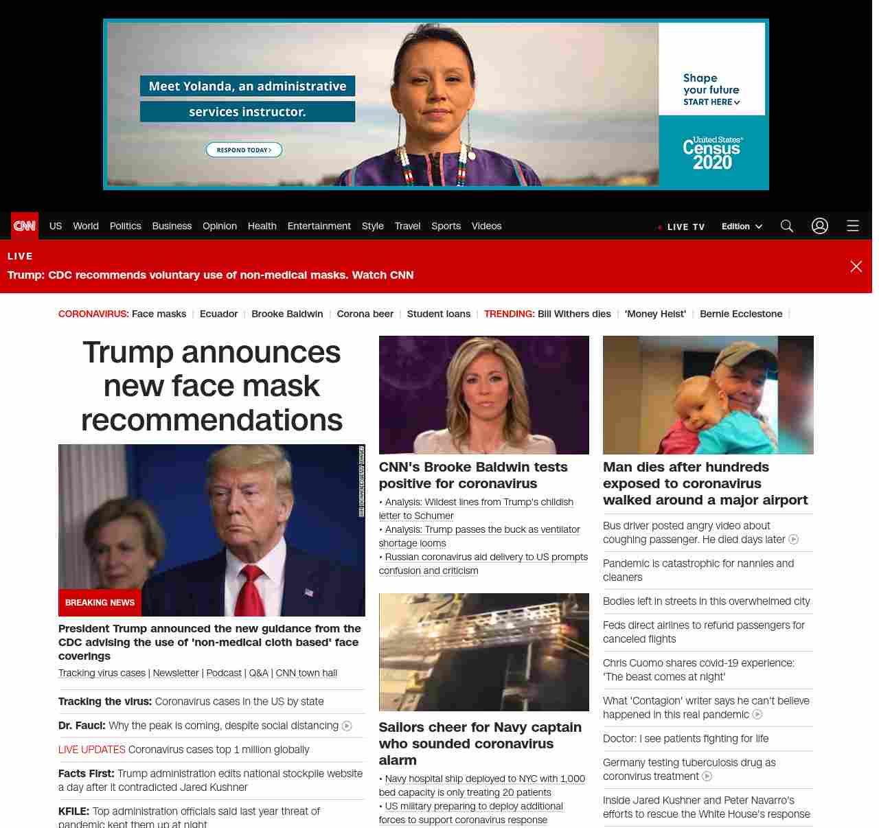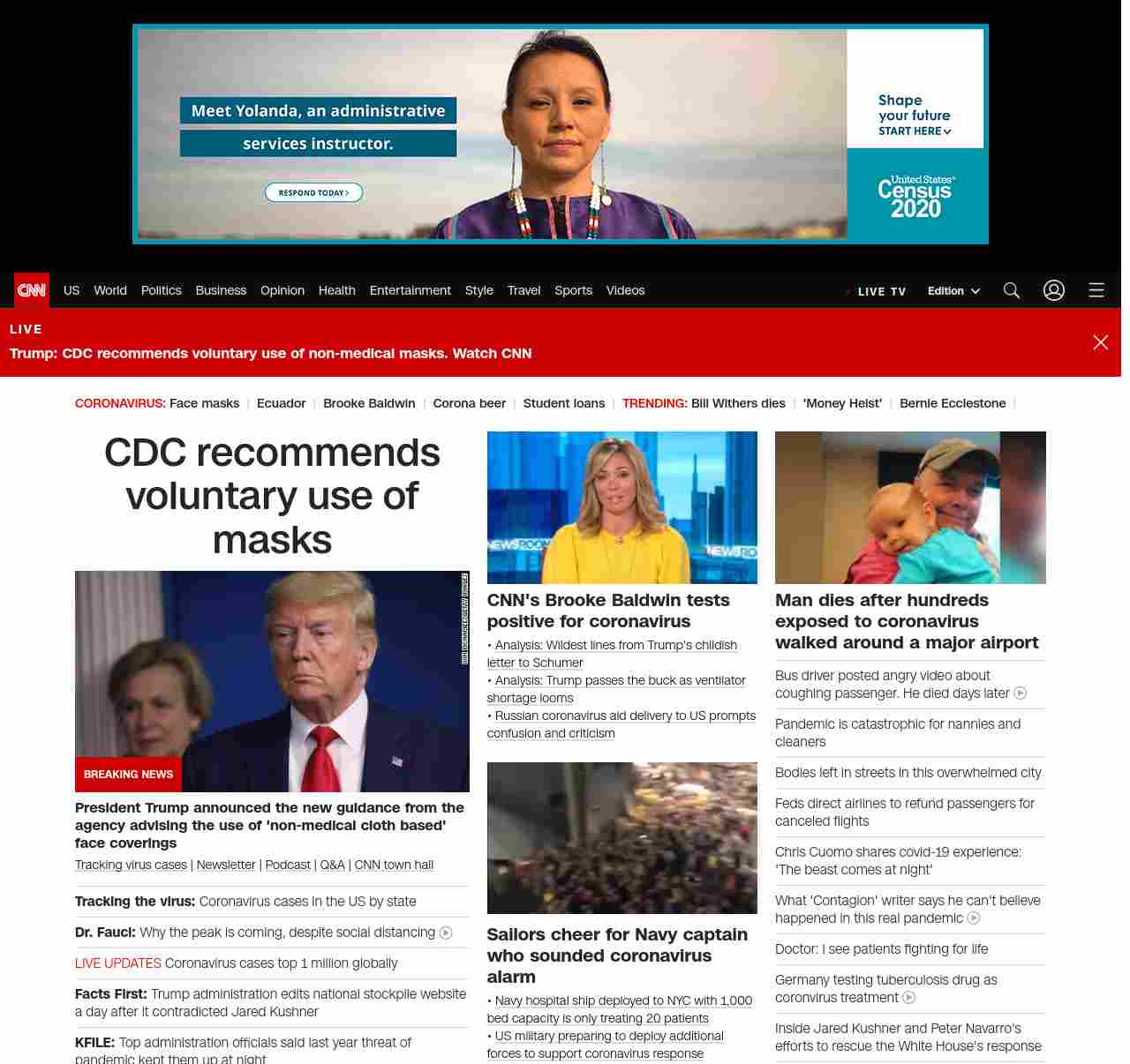 CNN3: “:”u003cstrong>President Trump announced the new guidance from the CDC advising the use of ‘non-medical cloth based’ face coveringsu003c/strong>”, “BANNER=|pagerendered| ((lubuntu at wor2))