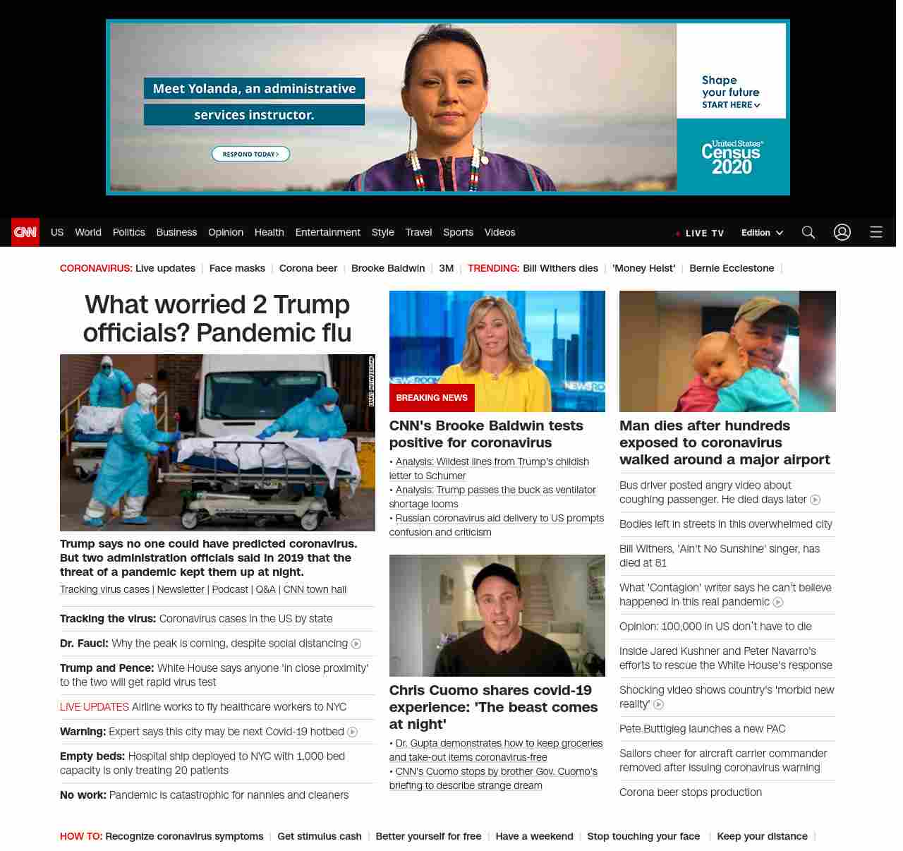 || screaming-banner-text banner-text-size–char-47″ data-analytics=”_list-hierarchical-xs_article_”> What worried 2 Trump officials? Pandemic flu ||” , title: “CNN – Breaking News, Latest News and Videos” , siblings: {“articleList”:[{“uri”:”/2020/04/03/politics/kfile-officials-worried-over-pandemic-last-year/index.html”,”headline”:”u003cstrong>Trump says no one could have predicted coronavirus. But two administration officials said in 2019 that the threat of a pandemic kept them up at night.u003c/strong>”,”thumbnail”:”//cdn.cnn.com/cnnnext/dam/assets/200402223244-03-coronavirus-0402-new-york-small-11.jpg”,”duration”:””,”description”:”u003ca href=”https://www.cnn.com/interactive/2020/health/coronavirus-maps-and-cases/” target=”_blank”>Tracking virus casesu003c/a> | u003ca href=”https://www.cnn.com/specials/coronavirus-newsletter?utm_source=hp&source=hp” target=”_blank”>Newsletteru003c/a> | u003ca href=”https://www.cnn.com/audio/podcasts/corona-virus”>Podcastu003c/a> | u003ca href=”https://www.cnn.com/interactive/2020/health/coronavirus-questions-answers/” target=”_blank”>Q&Au003c/a> | u003ca href=”https://www.cnn.com/2020/04/02/app-news-section/full-coronavirus-town-hall-april-2-2020-app/index.html” target=”_blank”>CNN town hallu003c/a>”,”layout”:””